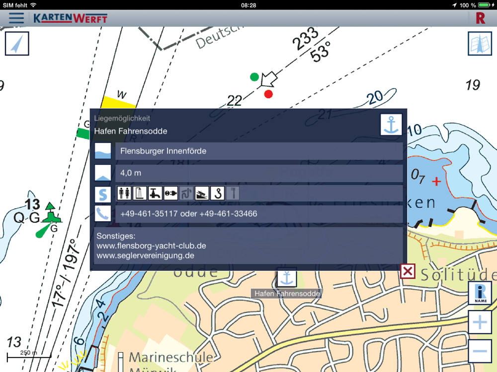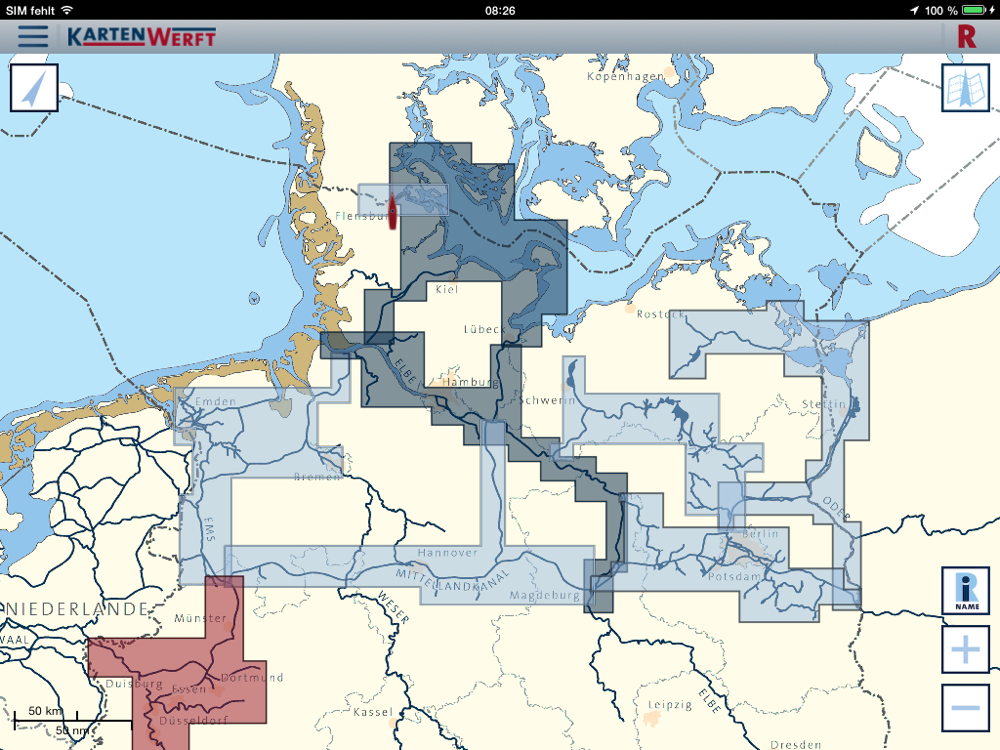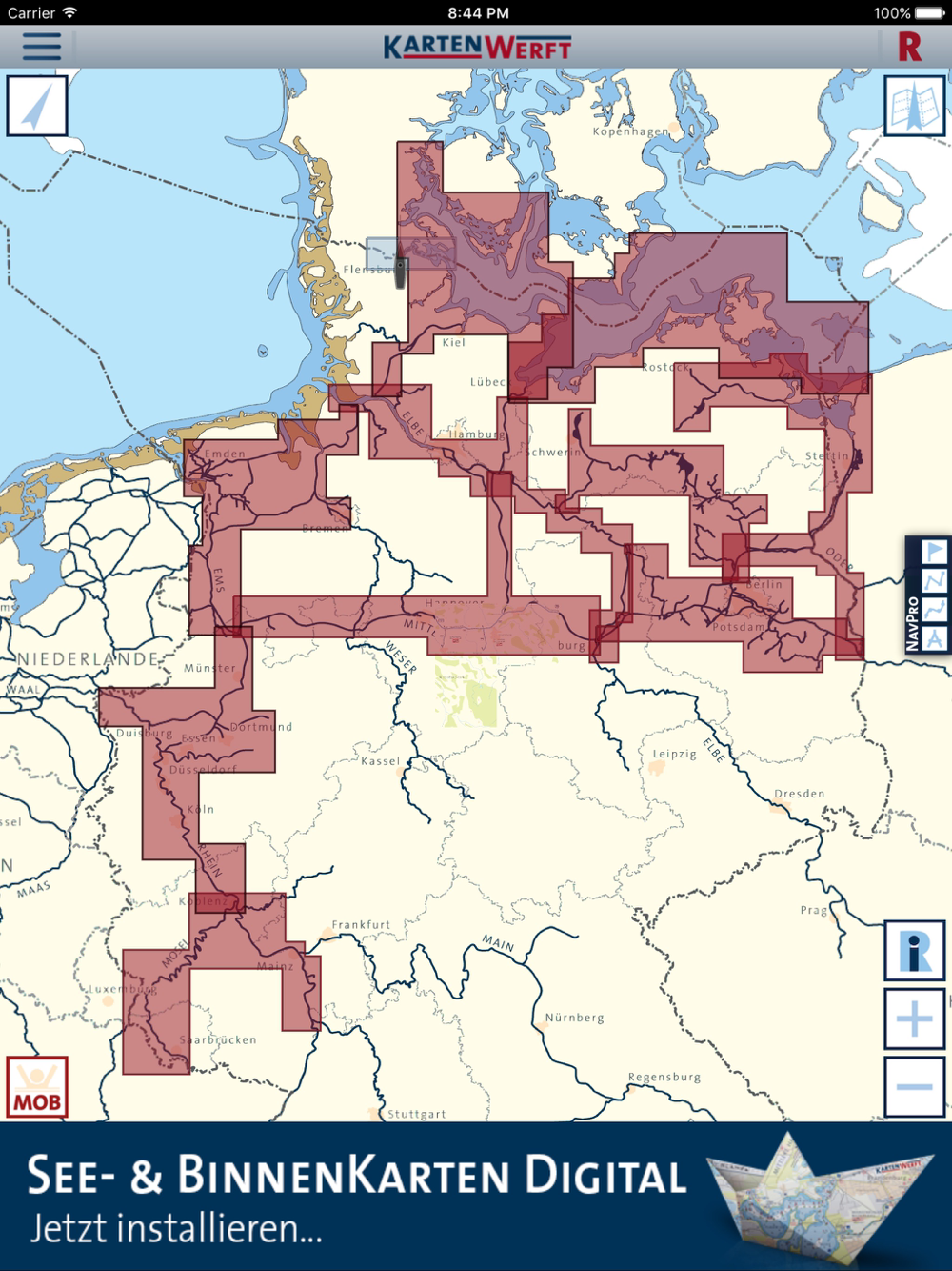 Die App KartenWerft NavGo bietet digitale Navigation für See- und Binnenreviere für Sportboote. Sie beinhaltet eine Übersichtskarte der schiffbaren Gewässer in Deutschland und den Anrainerstaaten. Zur Navigation im Revier werden die digitalen See- oder BinnenKarten benötigt (ab € 29,90). Sie beinhalten neben detaillierten Karten umfassende RevierInformationen zu Liegemöglichkeiten, Schleusen, Bootstankstellen oder auch temporären Sperrungen.