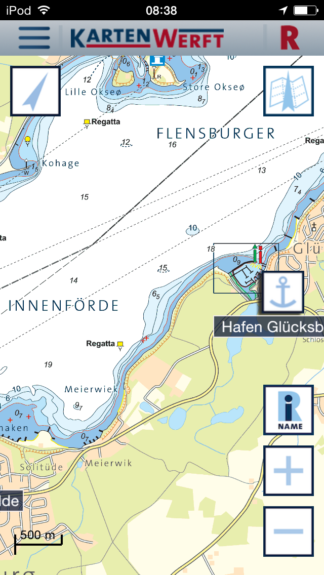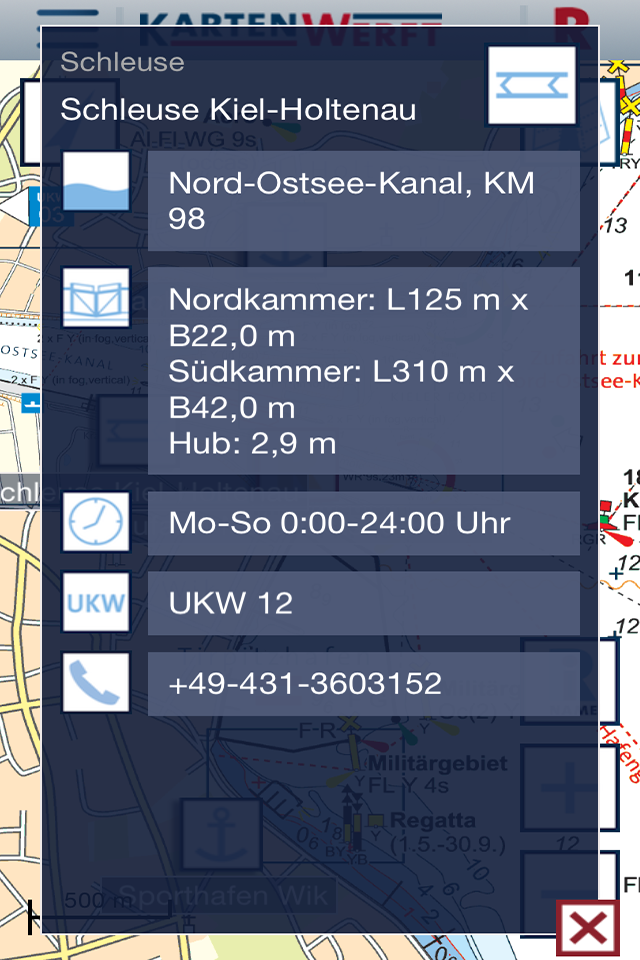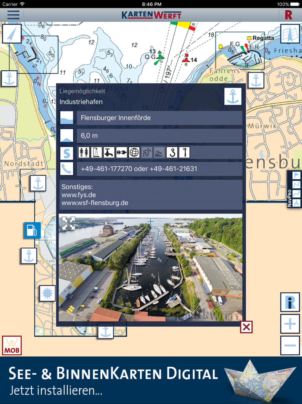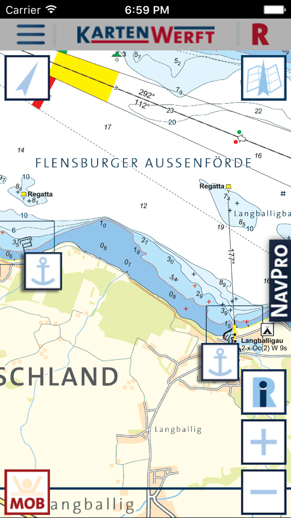 Die App KartenWerft NavGo bietet digitale Navigation für See- und Binnenreviere für Sportboote. Sie beinhaltet eine Übersichtskarte der schiffbaren Gewässer in Deutschland und den Anrainerstaaten. Zur Navigation im Revier werden die digitalen See- oder BinnenKarten benötigt (ab € 29,90). Sie beinhalten neben detaillierten Karten umfassende RevierInformationen zu Liegemöglichkeiten, Schleusen, Bootstankstellen oder auch temporären Sperrungen.