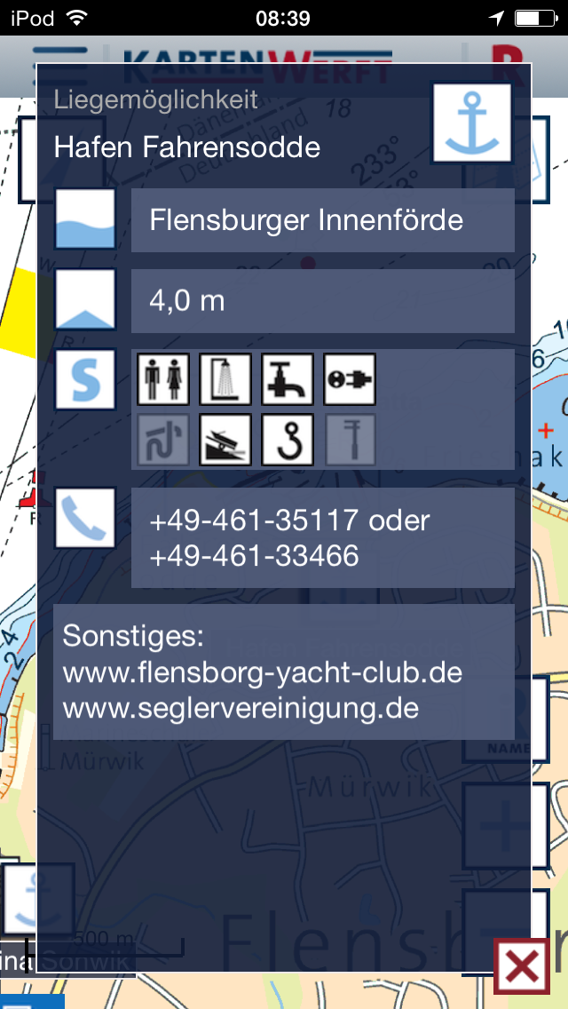 • diverse Navigationsfunktionen mit Upgrade auf NavPro (einmalig € 29,99) wie Markierungen, Tracking, Wegpunkte, Mess- und Peilwerkzeug und MOB