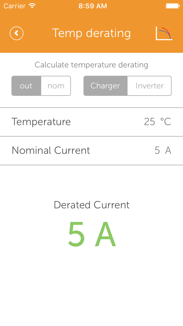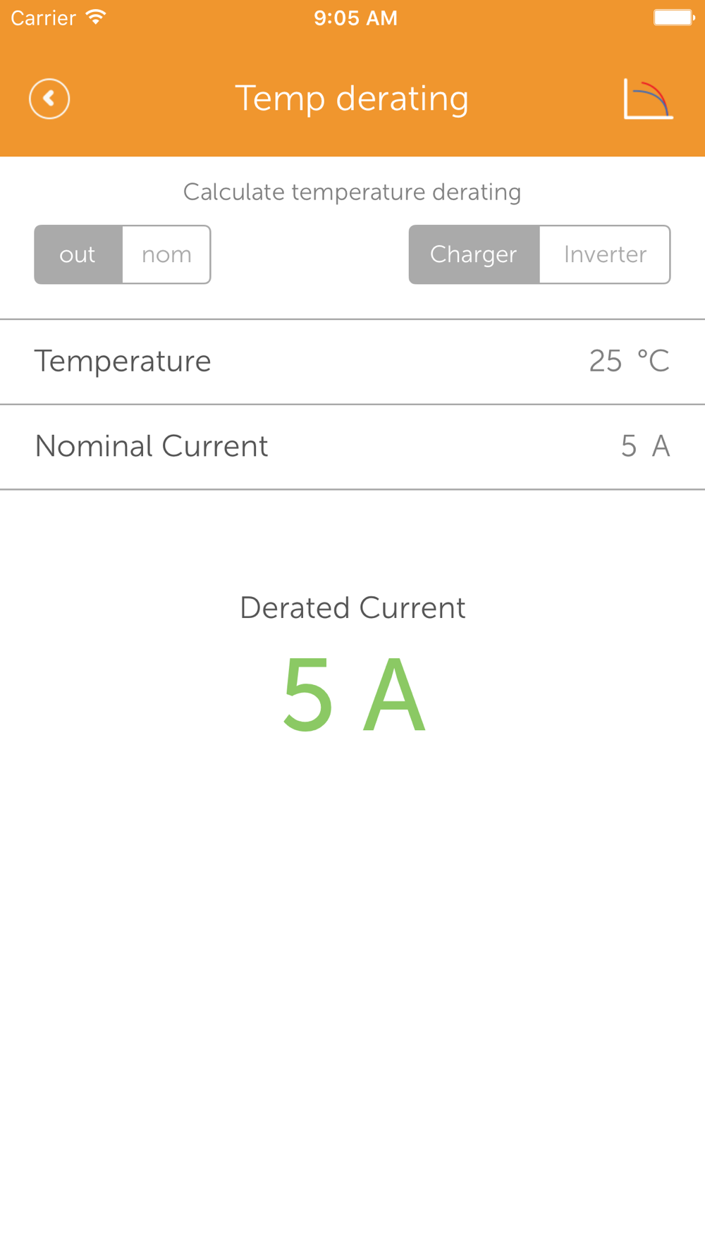 - Temperature derating. Calculate output power derating for inverters and chargers for the expected ambient temperature.