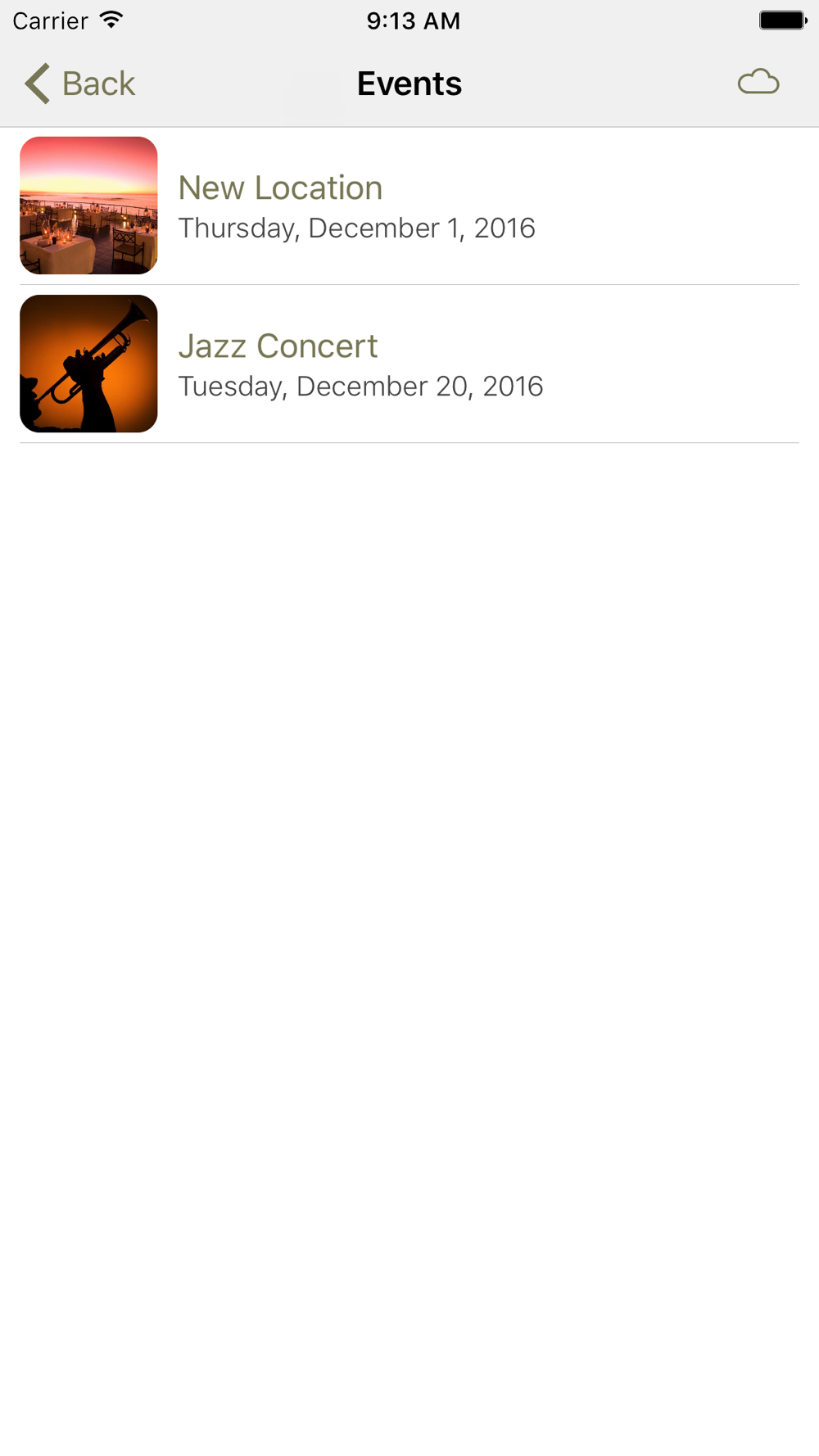 All published events in this section can be shared by the app users via Facebook and increase visibility.