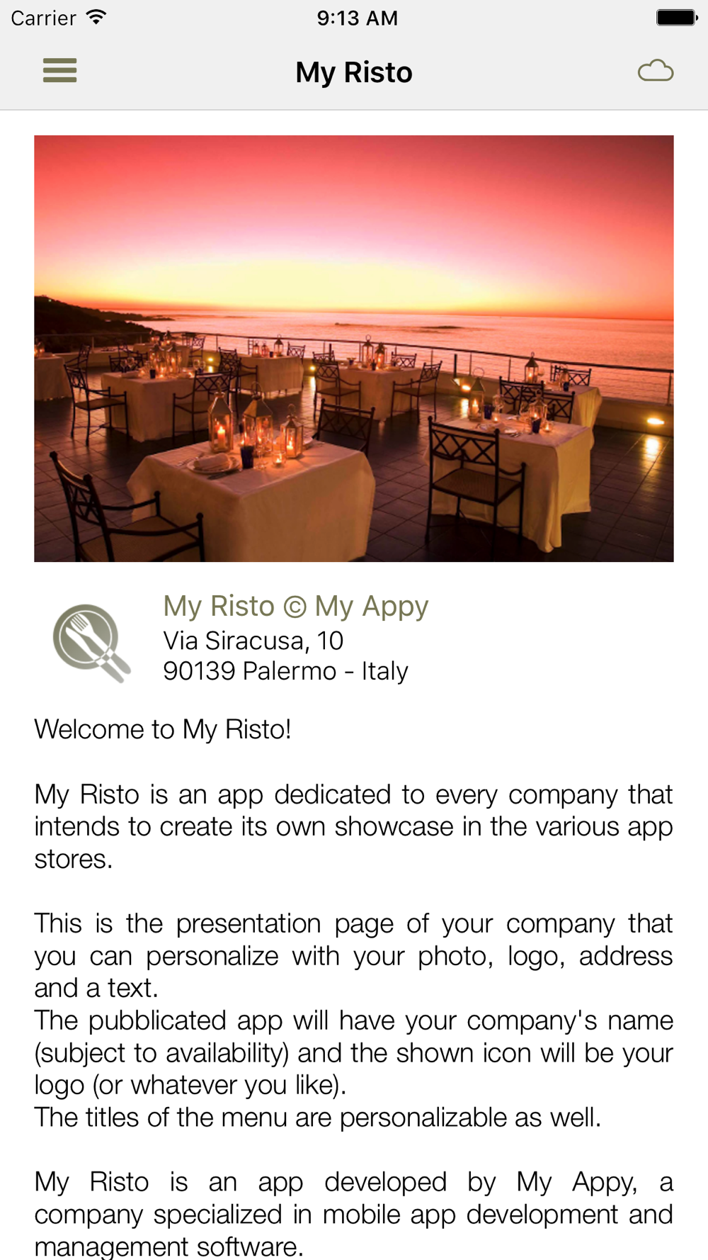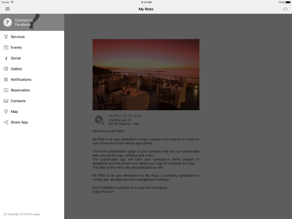 My Risto was developed by My Appy, a company specialized in mobile app development and management software. It is an affordable software solution for every company that intends to its own showcase in the App Store.