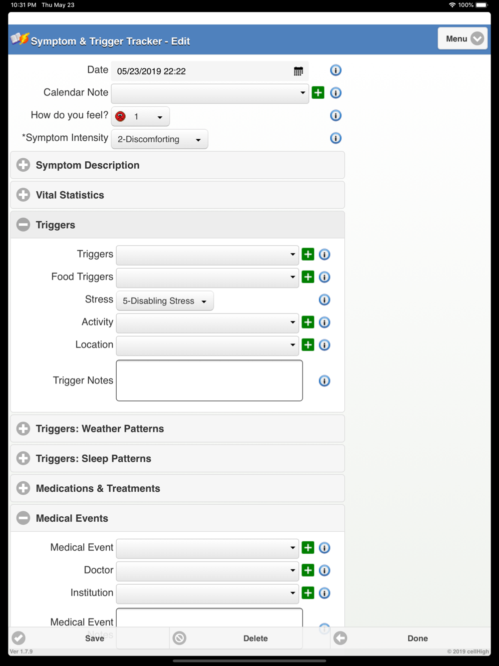 Bundle Id: com.cellhigh.SymptomTriggerTracker