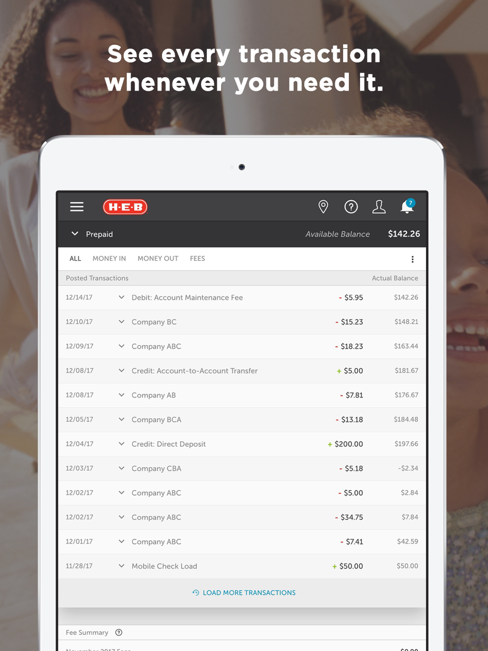 The H-E-B® Prepaid app lets you manage your Card Account wherever you are. That means it’s convenient to do things like: