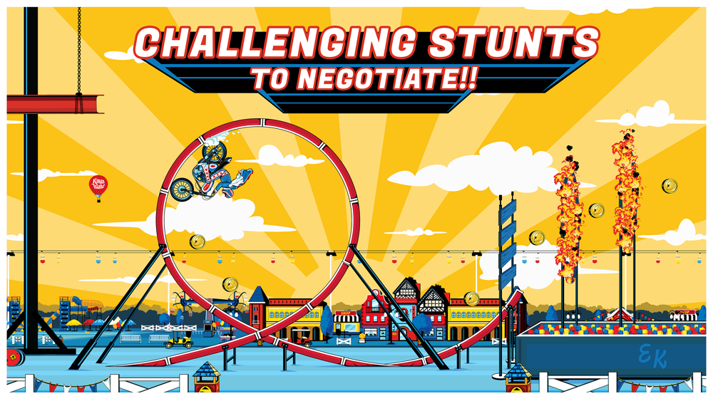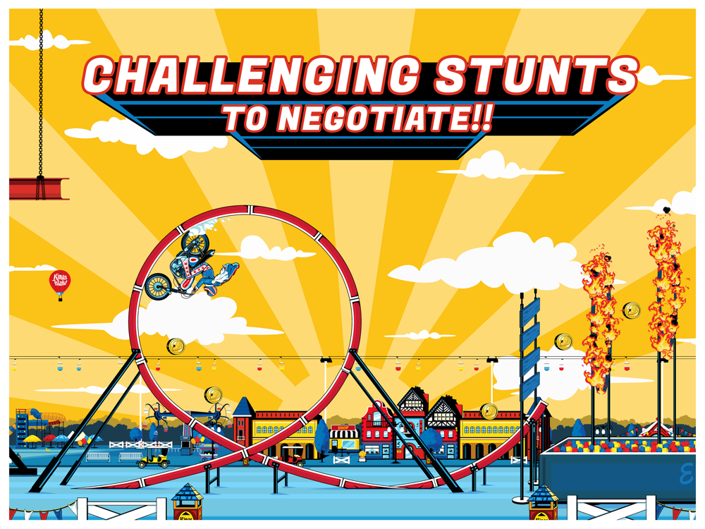 Have fun doing wheelies, flips, loops and many other stunts. Negotiate flaming hoops, springboards, cranes and many other exciting obstacles.