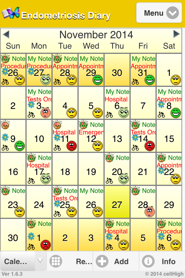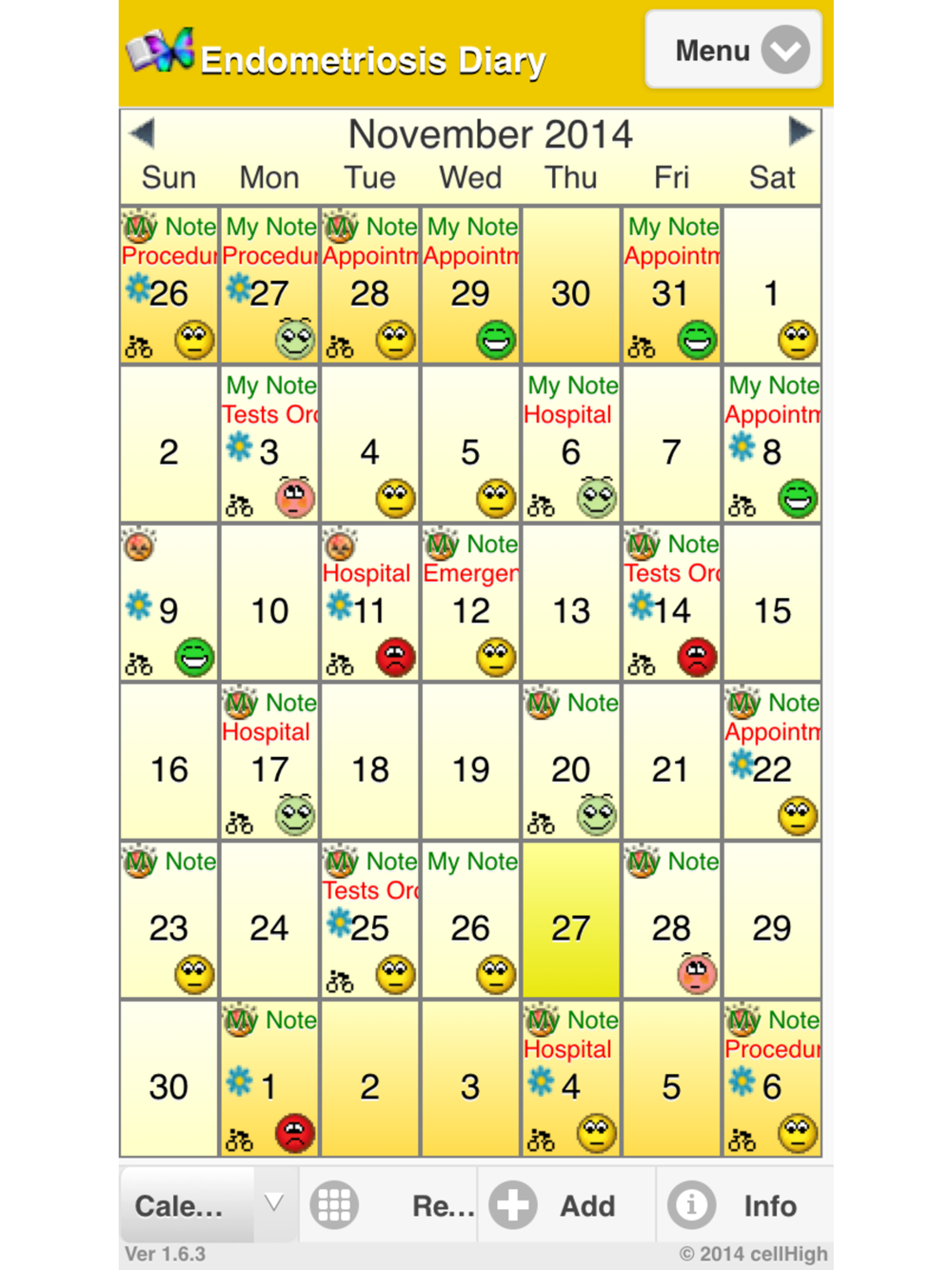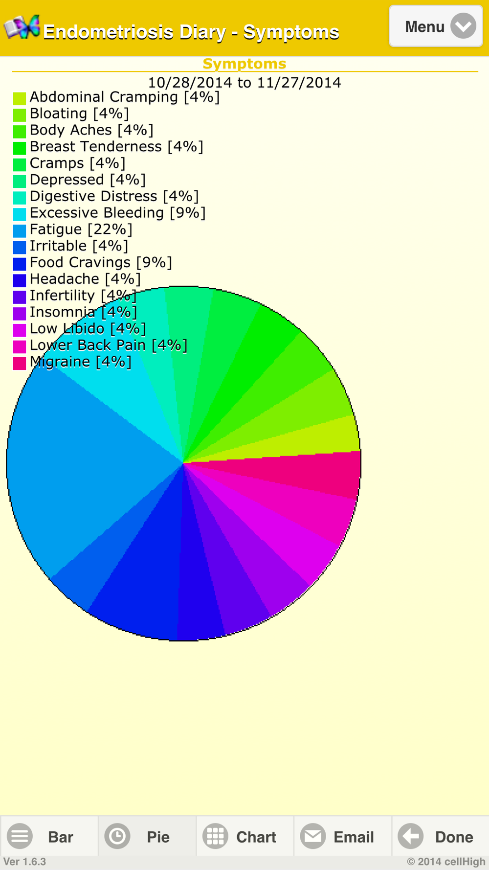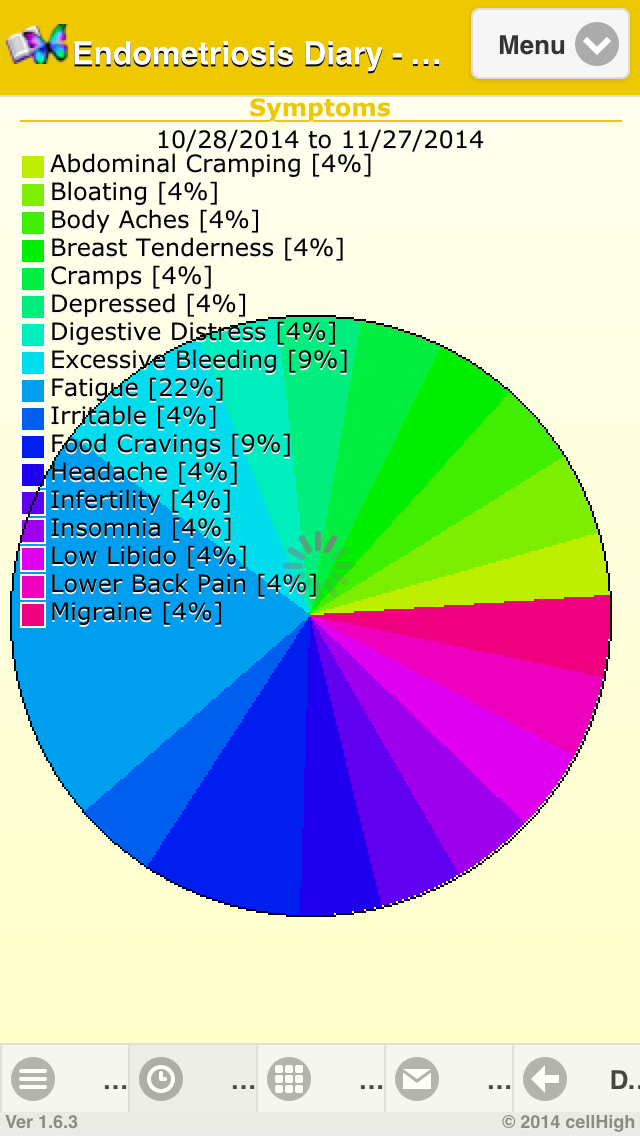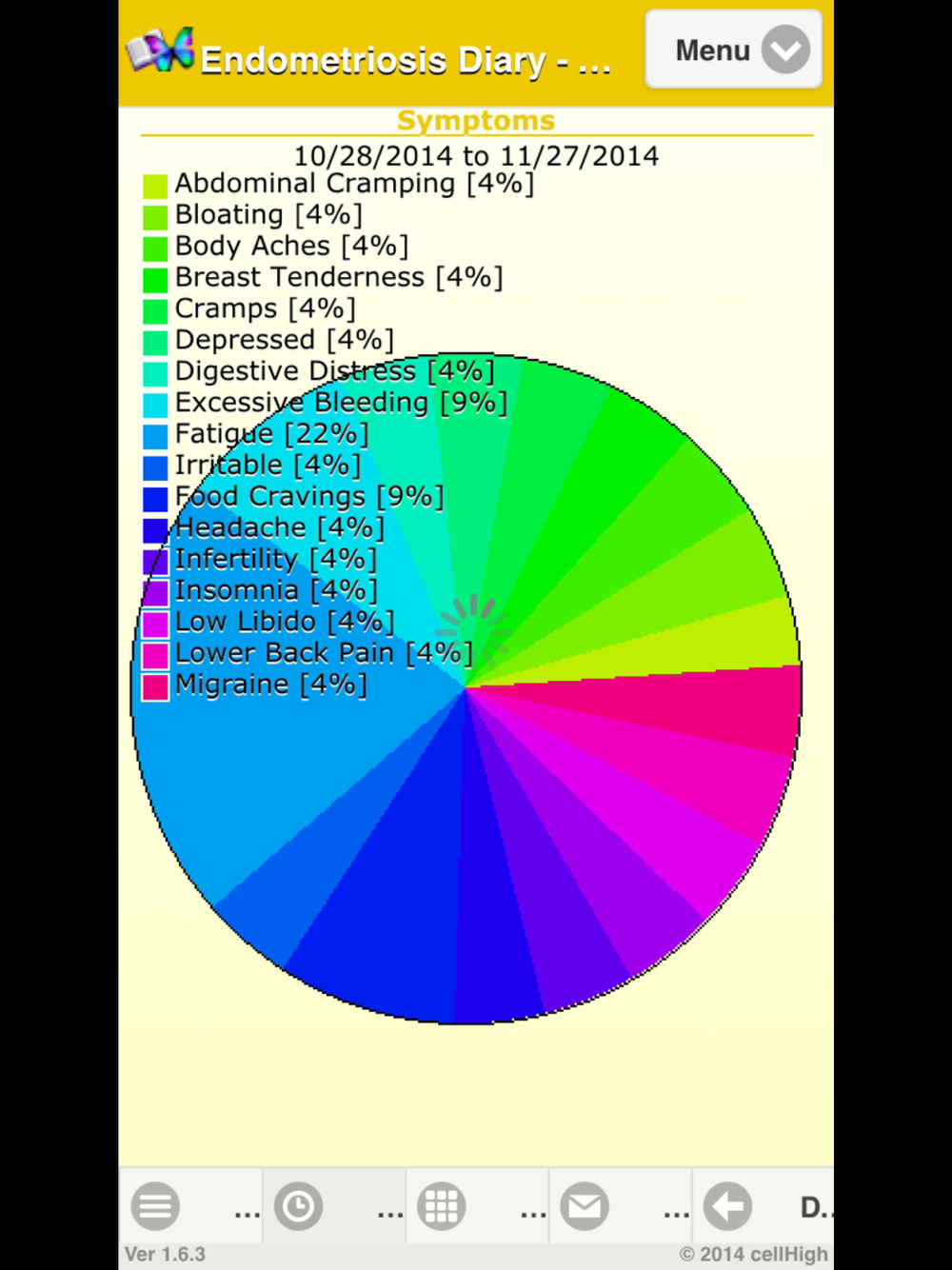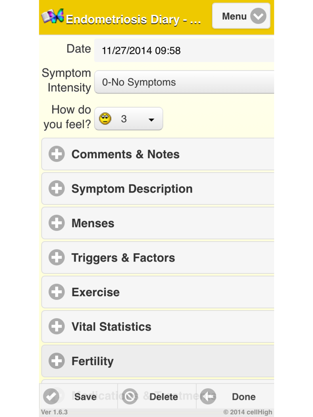 Are you like one of the millions of people who have Endometriosis? How can the Endometriosis Diary help? The Endometriosis Diary was designed to track information about your Endometriosis with a few screen taps. Using this information, the application will allow you to use triggers, like day of month and week and diet to predict and manage your Endometriosis. The Endometriosis Diary has a new “Trending and Forecasting” module that shows you which factors and triggers contribute to your pain and symptoms. This will help you feel better and will allow you to take control of your Endometriosis. The Endometriosis Diary makes it easy to perform tasks like tracking your treatment progress, graphing your patterns, emailing reports, including graphical attachments to your doctor and advisors. The Endometriosis Diary will also allow you to export your data to a spread sheet all with just a few screen taps. Do you want all of your health records and information at your fingertips so that you can start feeling better. The Endometriosis Diary can help.