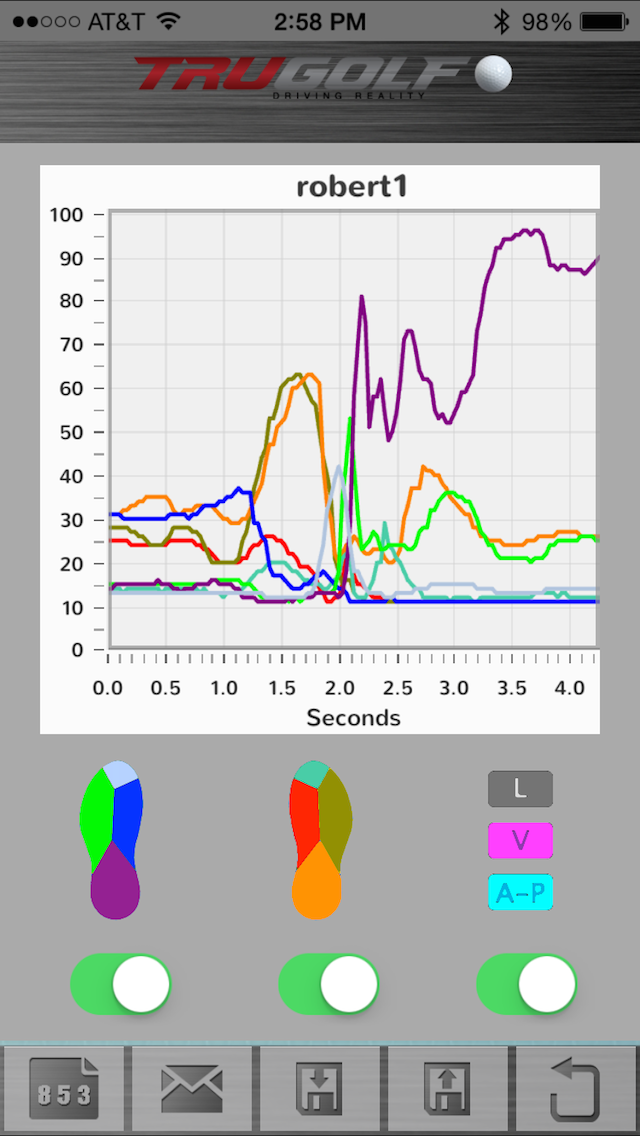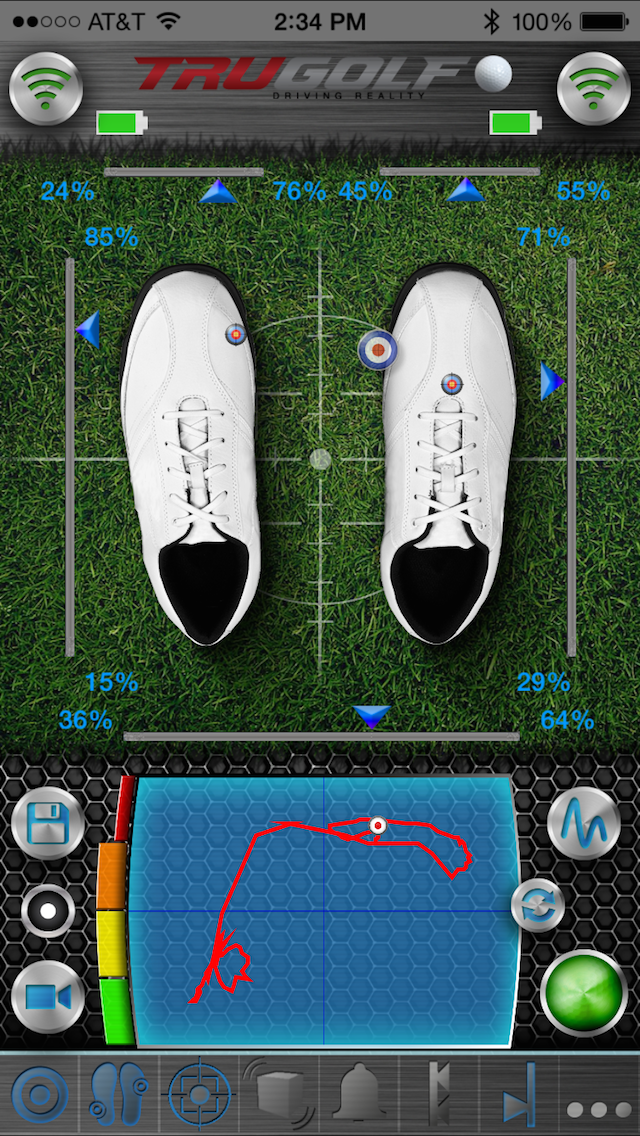 With TruBalance V, we’ve added high-speed video capture that is synced with the insole data to allow evaluation of your CORE balance position at various points in the golf swing or during a putt. The app allows you to save and share your CORE balance data and videos of your swings between users via email.