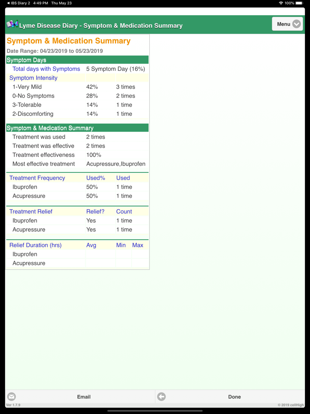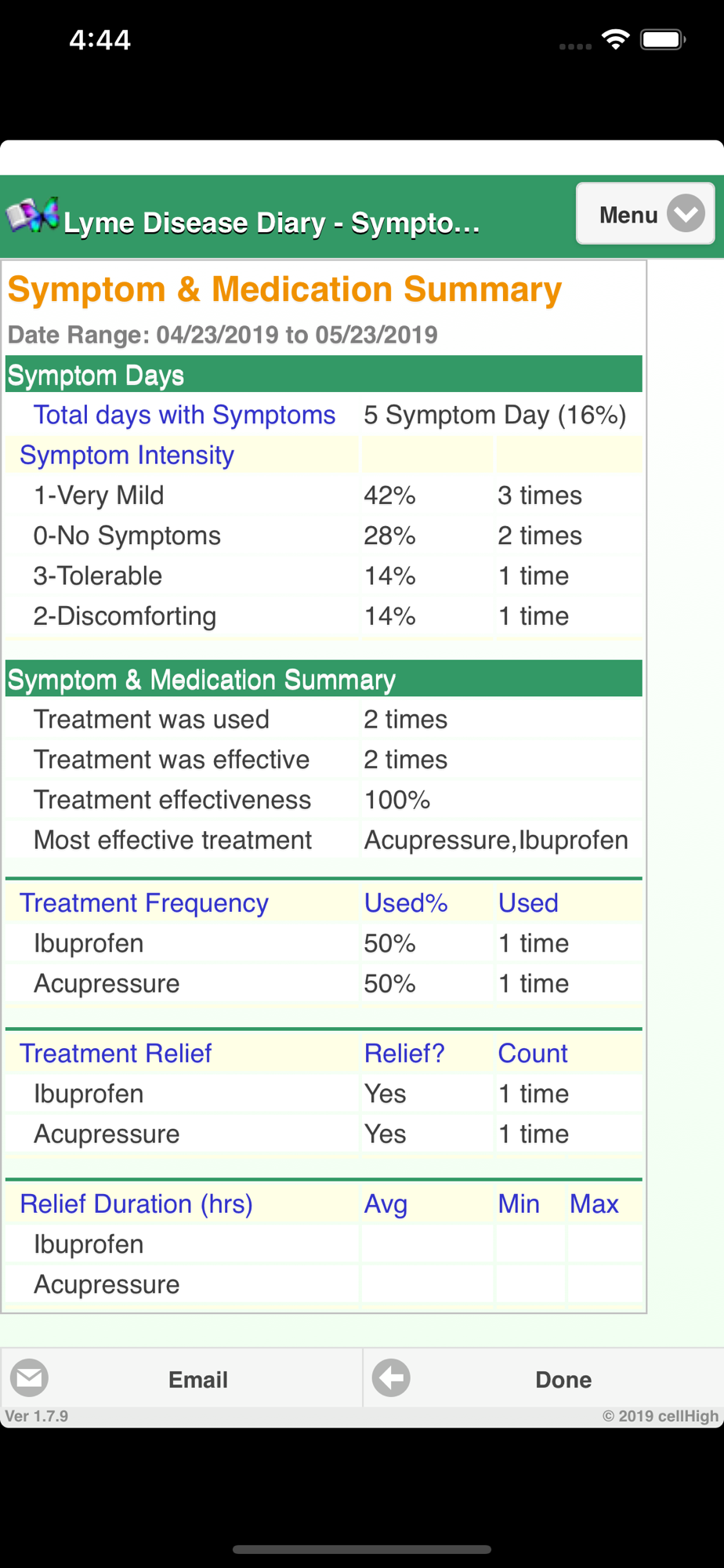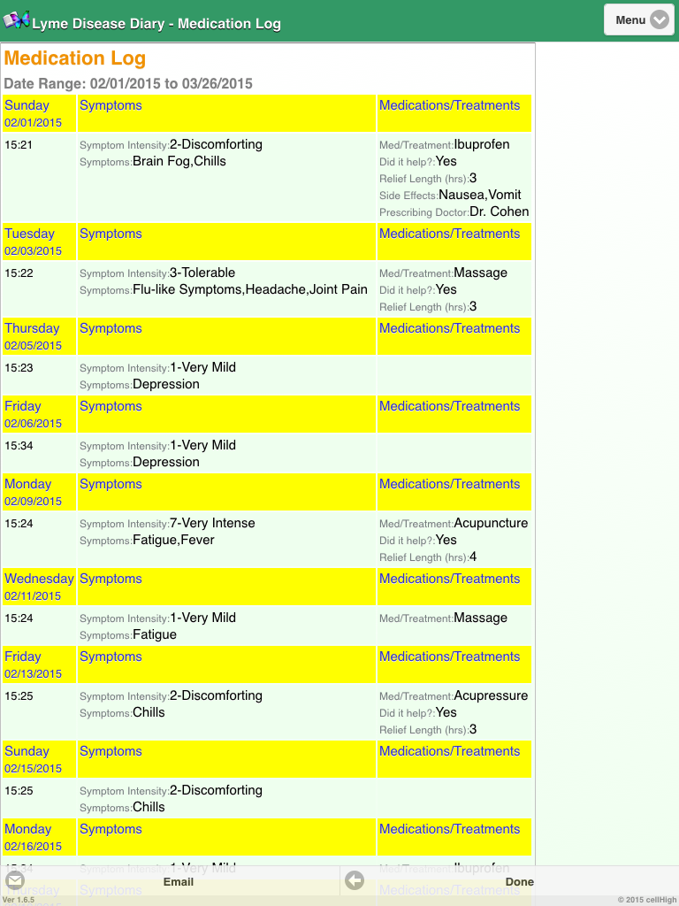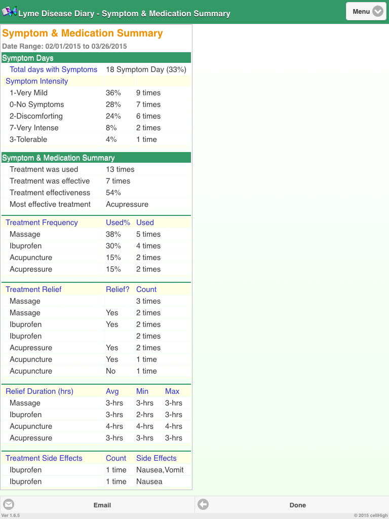 - Graph your patterns of experiences, email reports, including graphical attachments to your doctor so that they can help you adjust