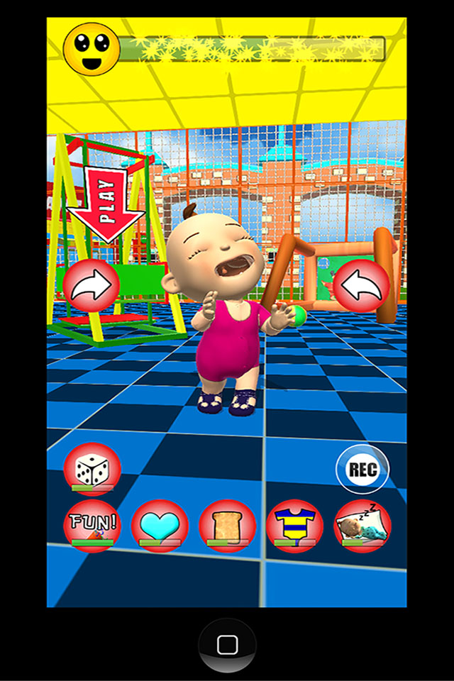 Meet Babsy the talking baby at the mall playground. Talk with her and she will repeat everything you say and respond to your touch. Spend a great time with Babsy and her joyful activities. Make her play with the different playground equipment, like the slide, the cool swing, the cool seesaw (teeter totter), the tunnel etc.