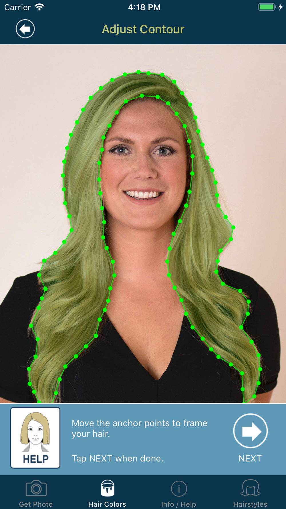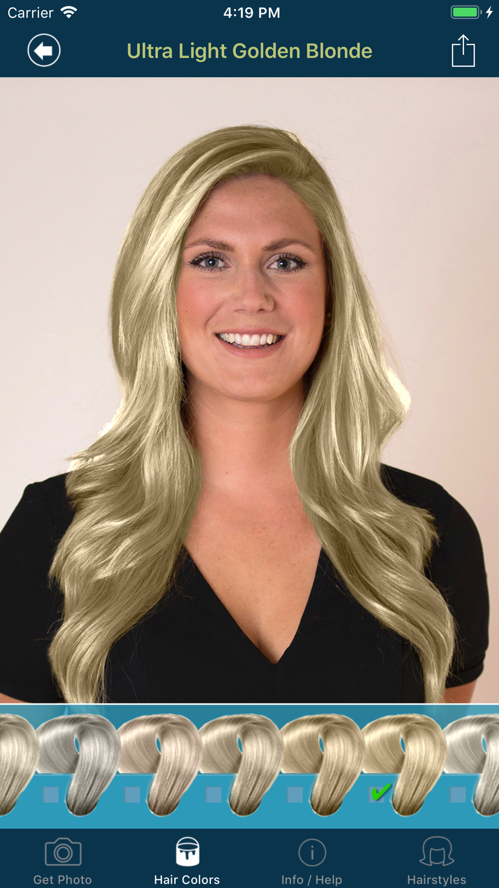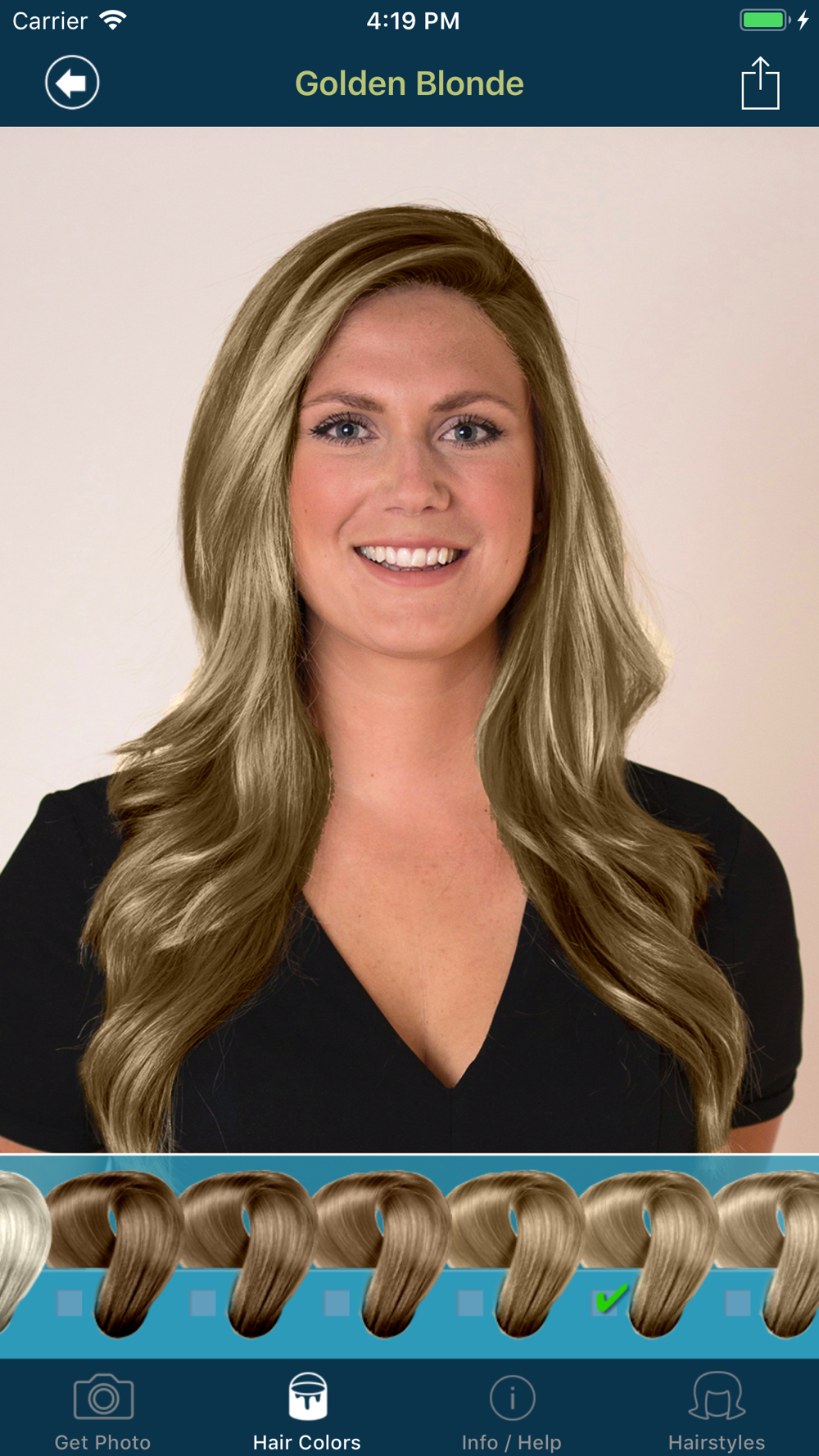 Try out a new color in just a few steps with this professional hair color app.