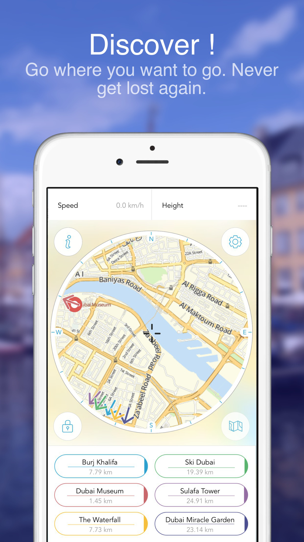 This application will guide you through Dubai but you'll remain the boss. Go wherever you want to go and feel free to lose yourself. Thanks to this app you will always be able to identify your exact location and find your way through the city.