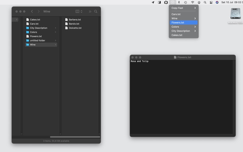 Whether you're working in another application or just need to quickly access a file, Copy Fast is always accessible from the right part of your menu bar.