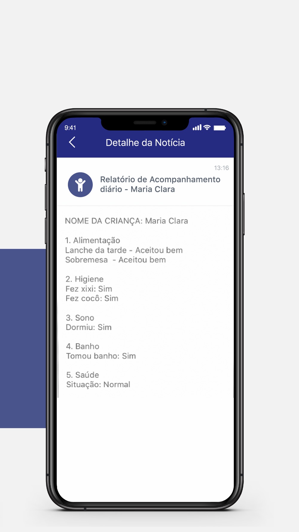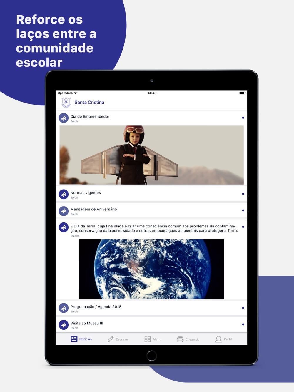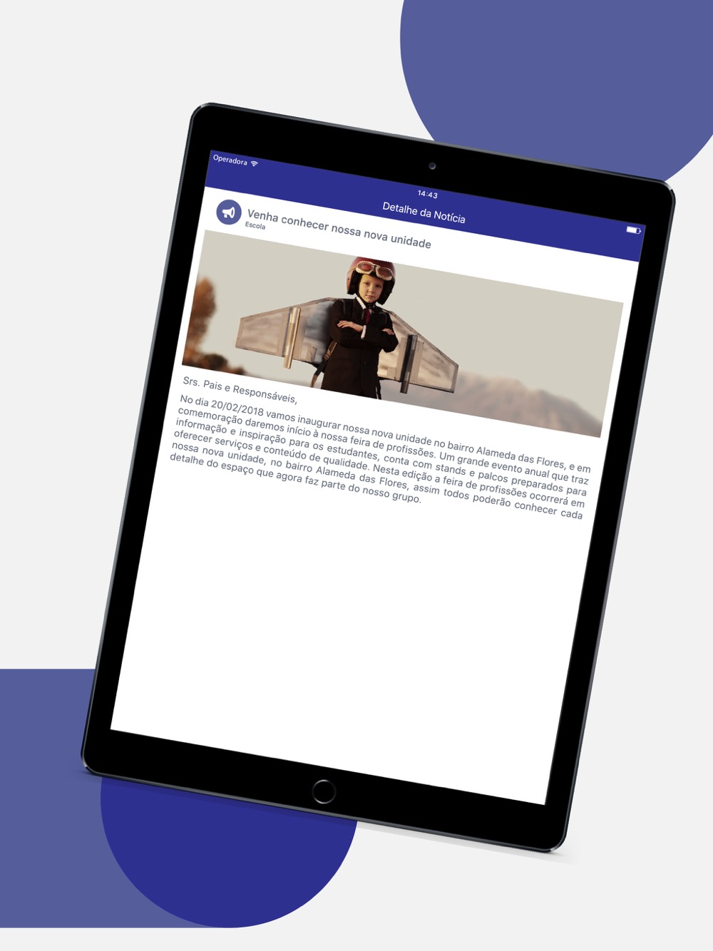 Com este aplicativo, os pais, responsáveis e professores poderão receber as últimas informações da escola, as notícias do dia a dia do seus filhos e o calendário de atividades escolares.