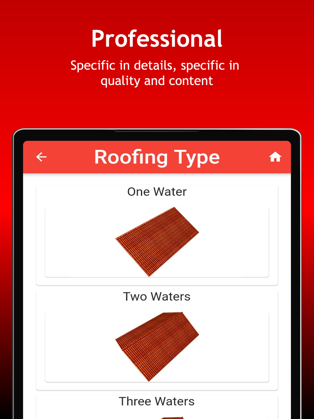 - Tile (Quantity of ceramic, cement, asbestos or metallic tiles and number of ridges)