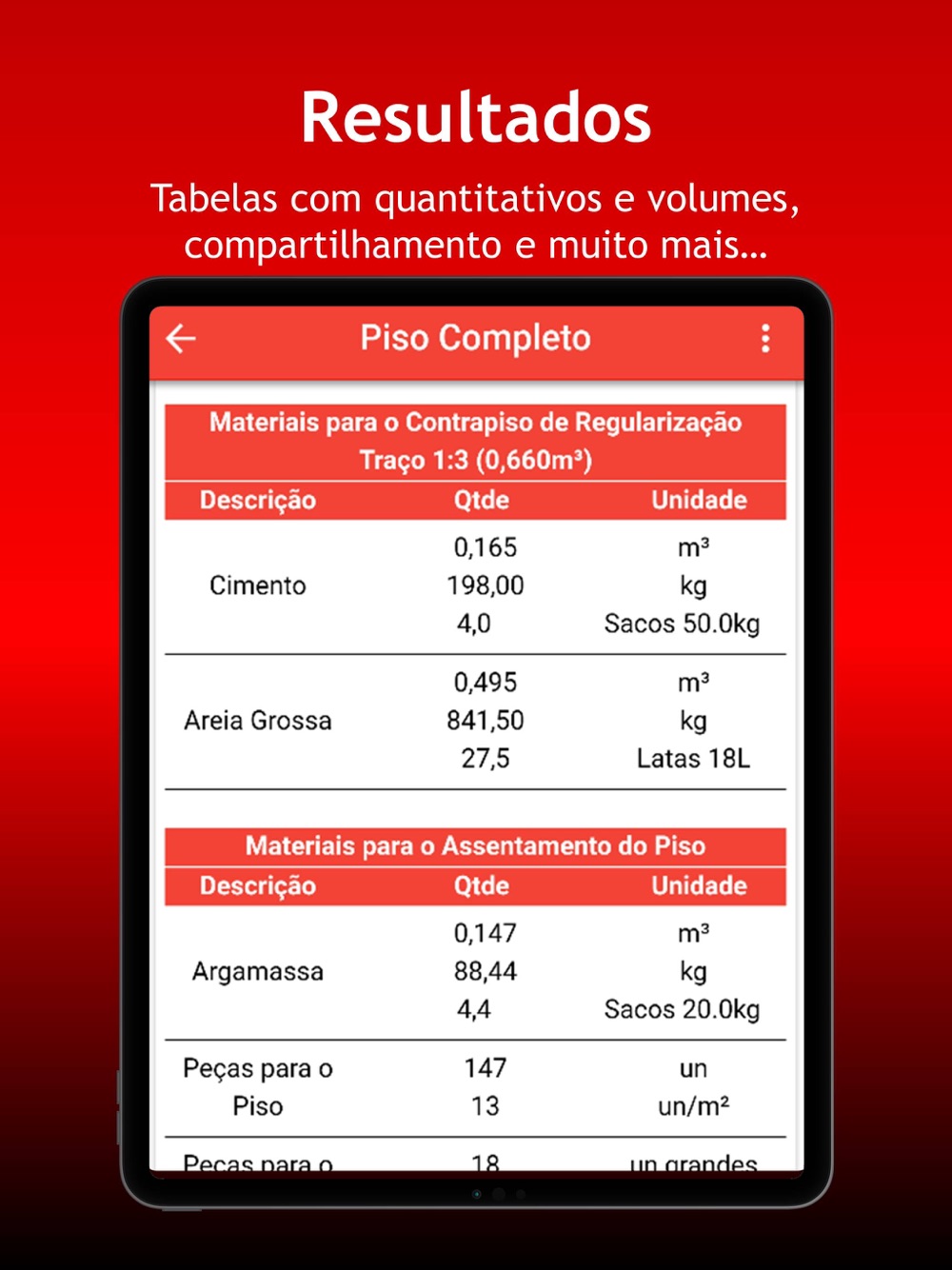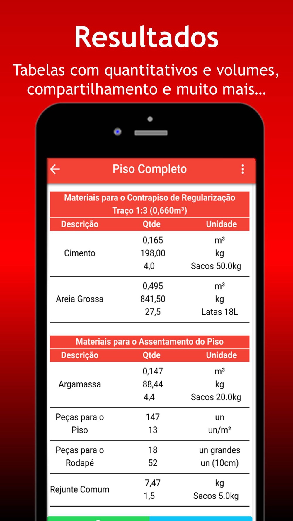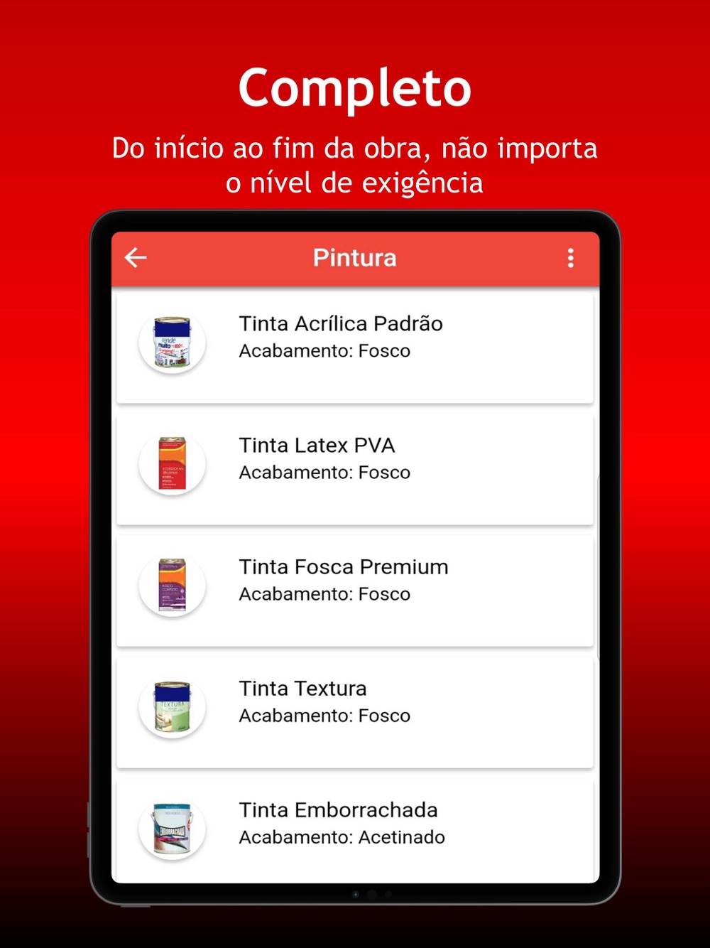 Este aplicativo te auxilia no cálculo dos materiais necessários para: