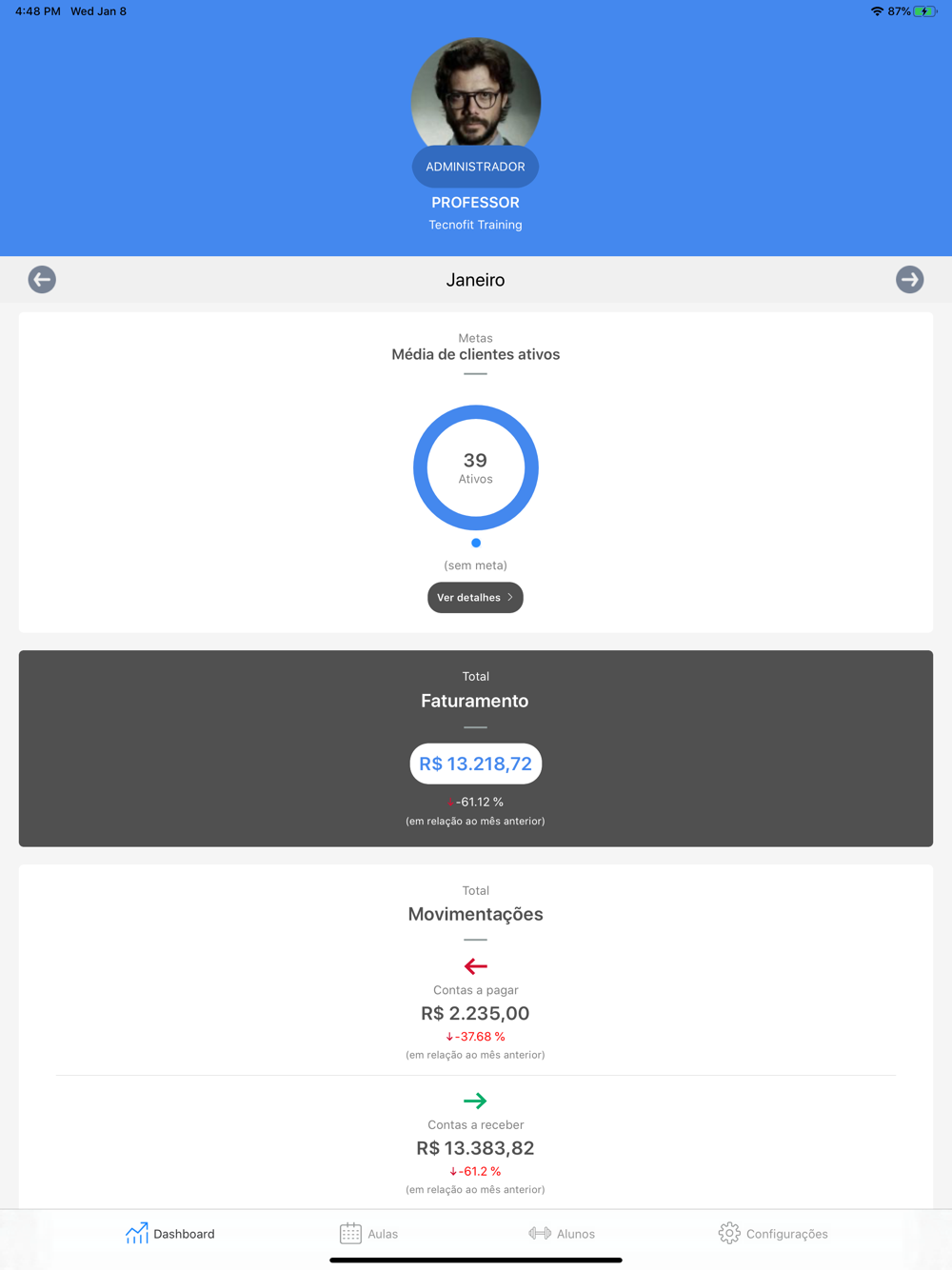 Com o aplicativo, você tem fácil acesso as principais funcionalidades do sistema Tecnofit. São elas: