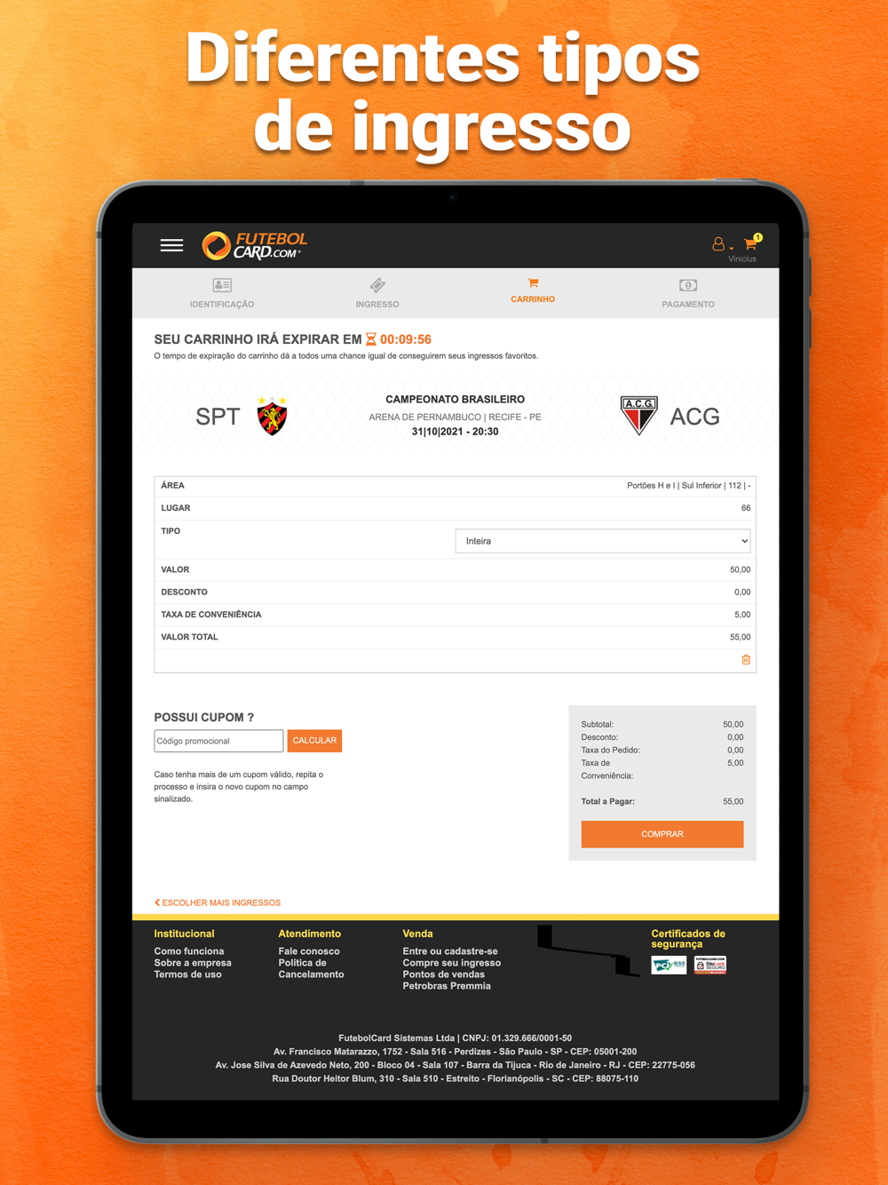 - Realizar as compras de forma rápida e objetiva no site FutebolCard.com, em uma área restrita e personalizada com senha e login;