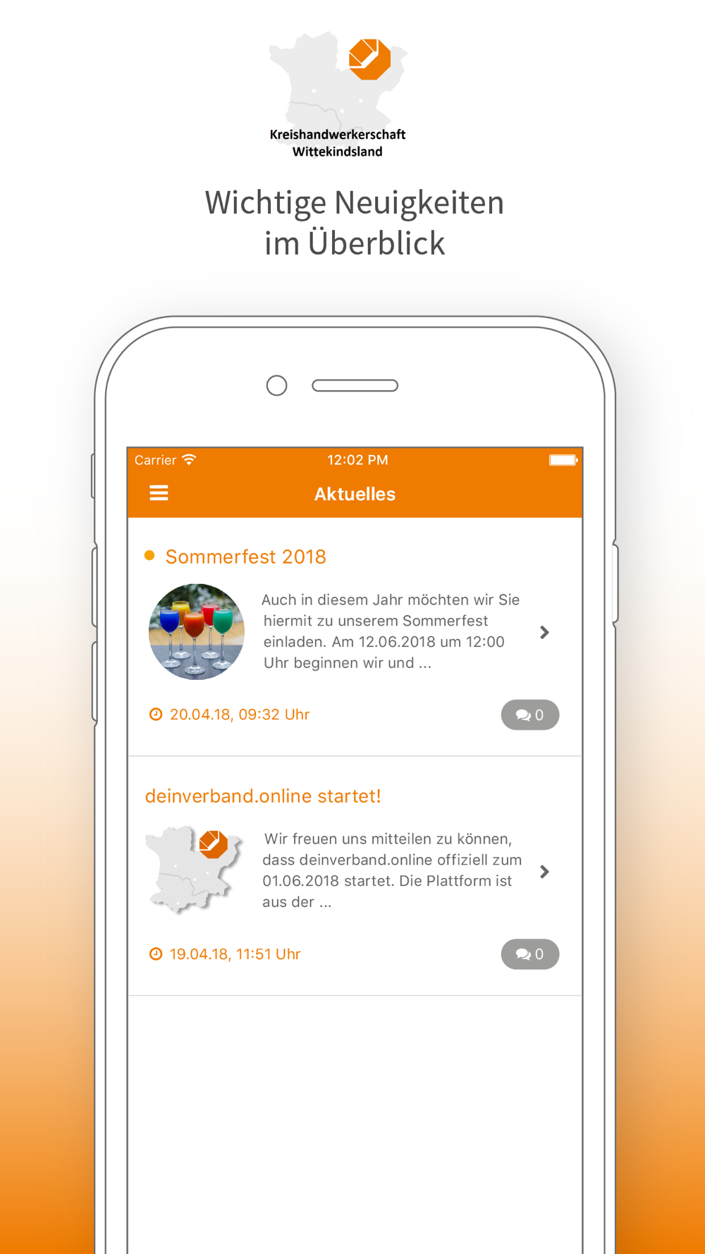 Wir halten Sie zukünftig zusätzlich über diese App auf dem Laufenden: unter dem Menüpunkt "Aktuelles" erfahren Sie die wichtigsten Neuigkeiten rund um die Kreishandwerkerschaft Wittekindsland.