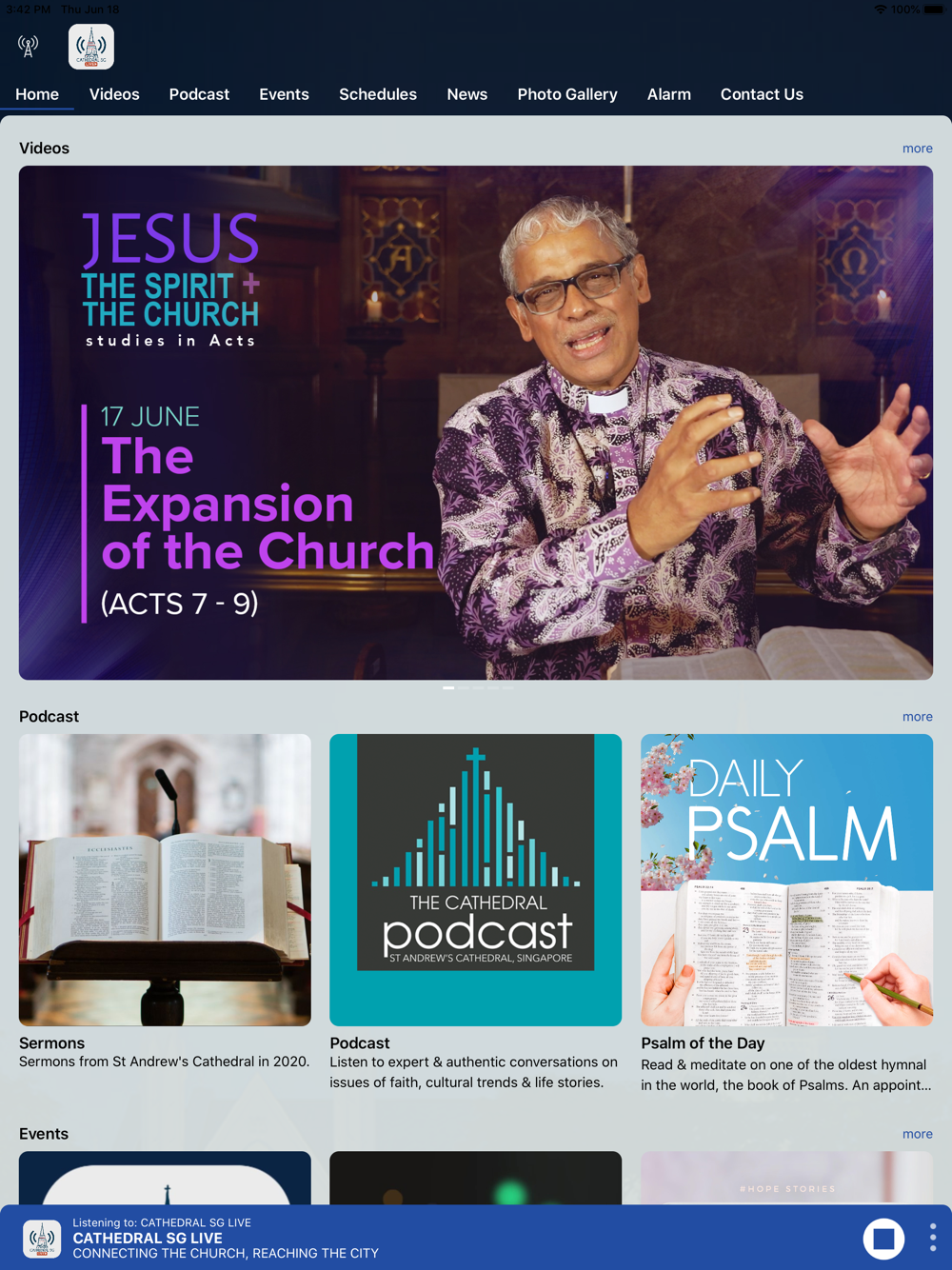 Cathedral SG Live is a community app of St Andrew’s Cathedral. It hosts podcasts, sermons, news and live-streaming radio for the Cathedral community and other Anglicans in the Diocese of Singapore and her deaneries. Website: cathedral.org.sg, anglican.org.sg