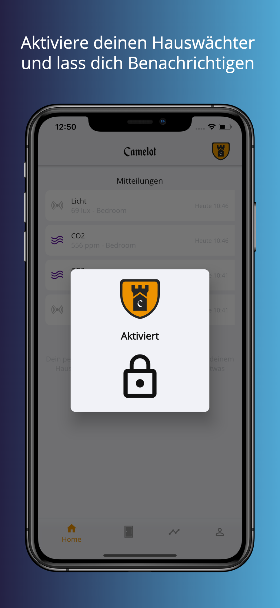 Über die Camelot Smartphone-App kannst du dich bequem einloggen und deinen Hauswächter verwalten und nutzen.