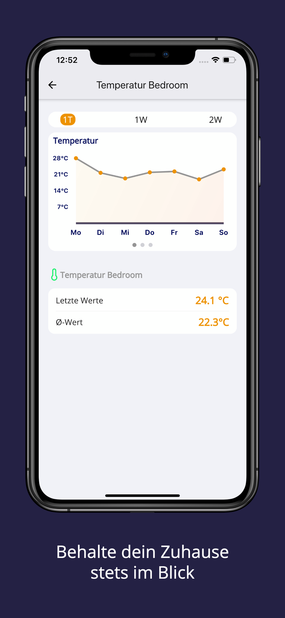 In der App siehst du alle Sensoren in deinem Zuhause und kannst dir die Messwerte übersichtlich visualisieren lassen.