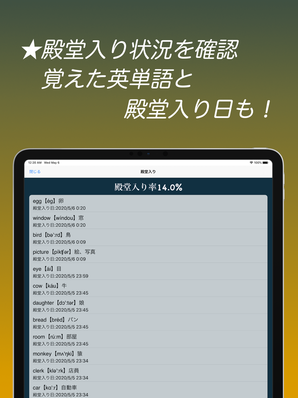 ゲーム感覚でテンポよく問題を解き、暗記した問題は殿堂入りに登録され、登録数が増えると新たな問題が出現します。
