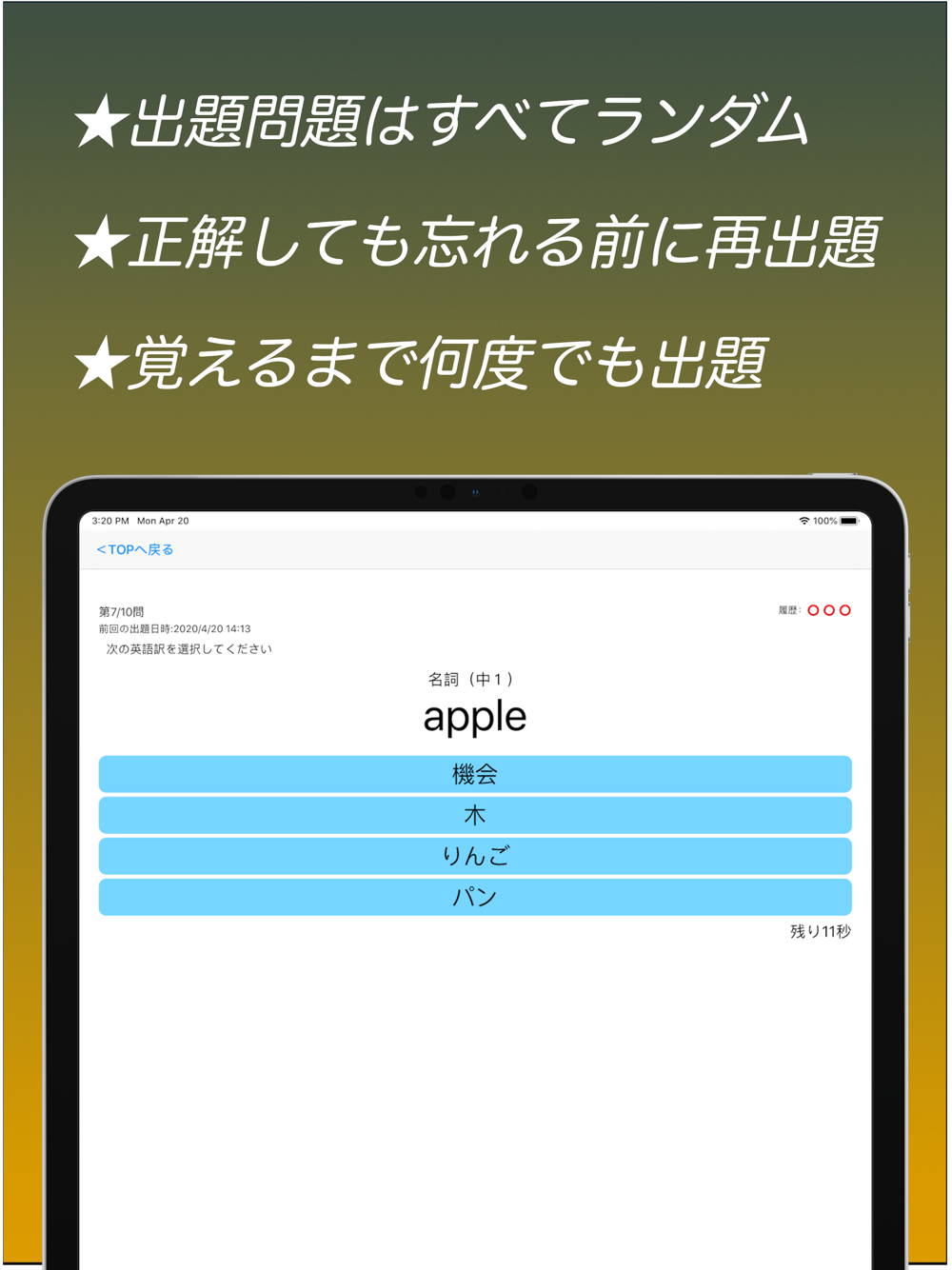 一度でも間違えるとしばらく時間を空けて再出題