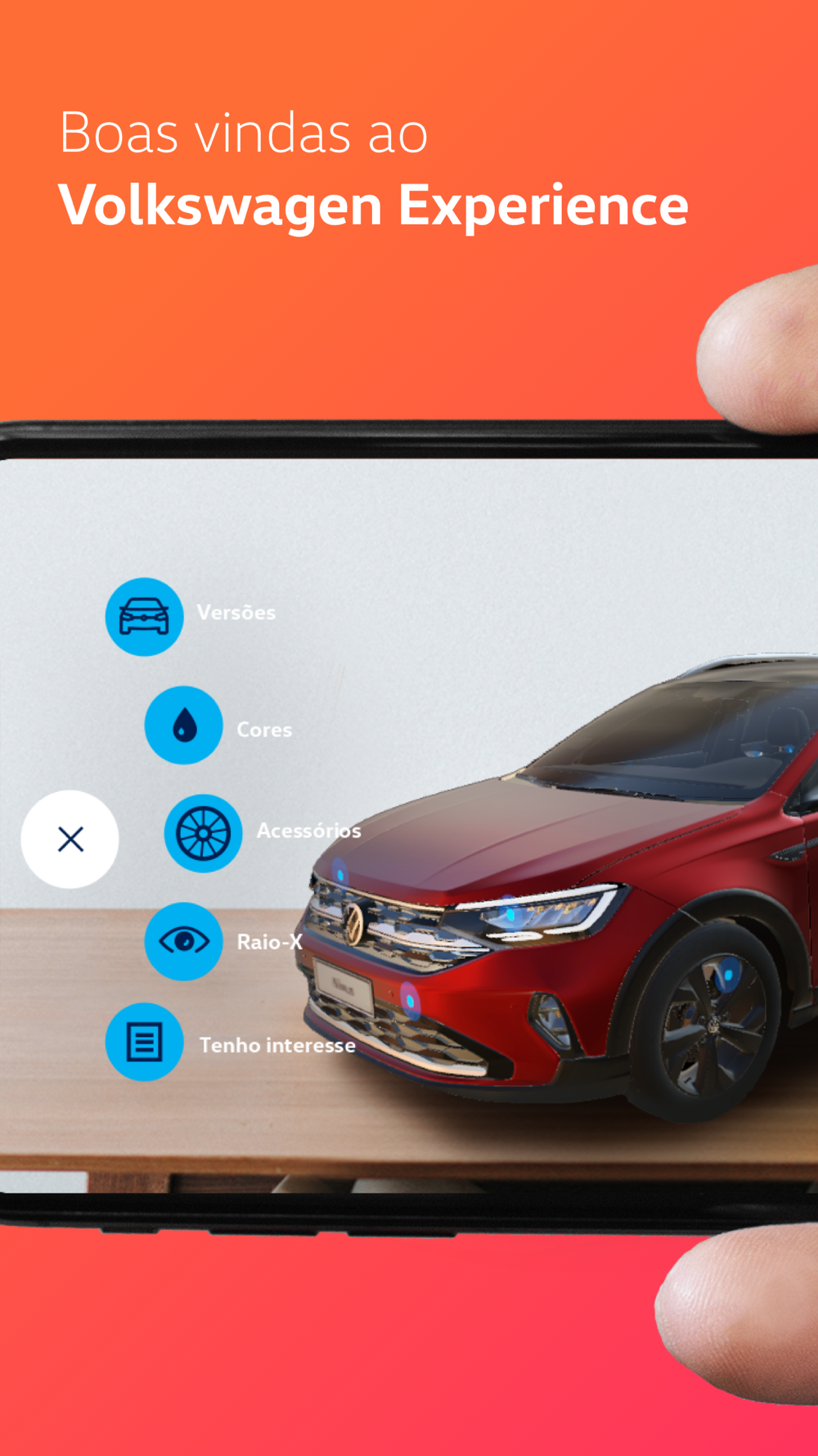 Com o aplicativo de realidade aumentada da Volkswagen você poderá ver o carro com detalhes, explorar seus principais diferenciais e até ver como ficaria esse lançamento na sua garagem.
