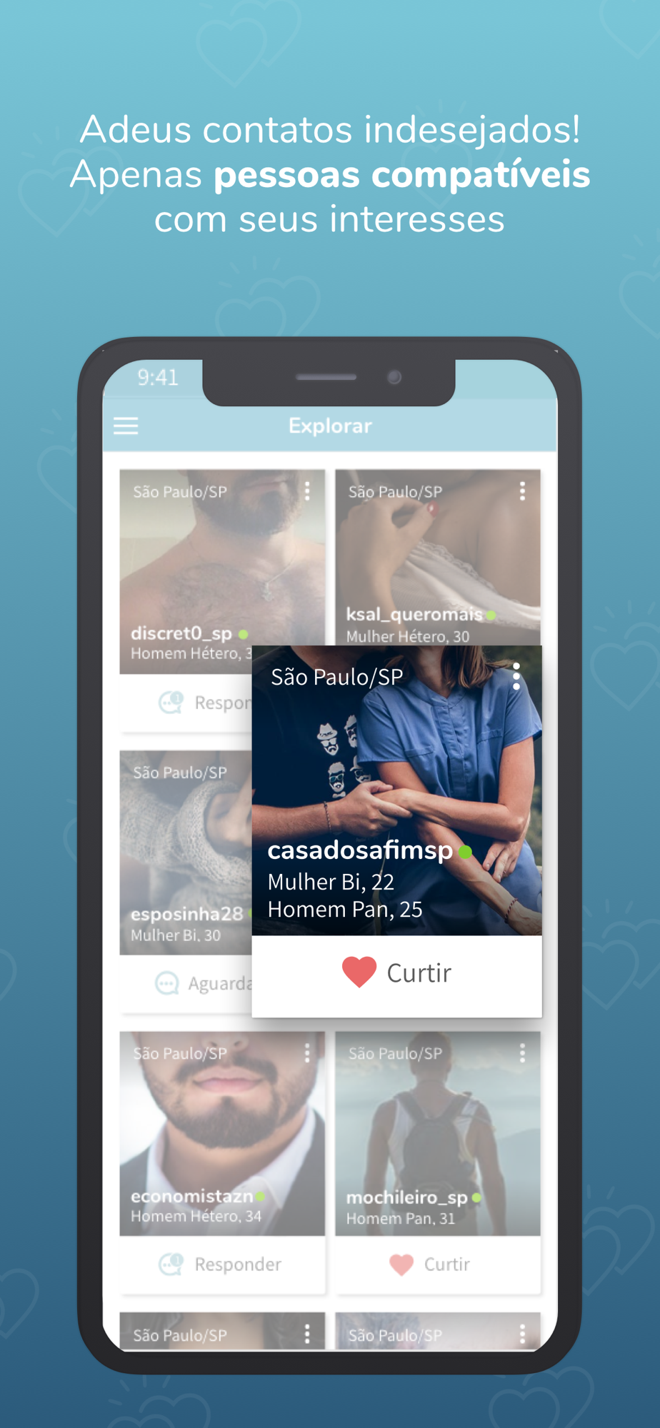 Você escolhe com quais perfis quer se relacionar e apenas quem te interessa poderá falar com você