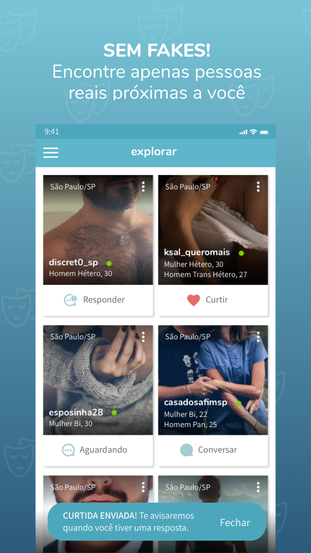 Busque por pessoas reais pertinho de você e marquem encontros com SIGILO e SEGURANÇA