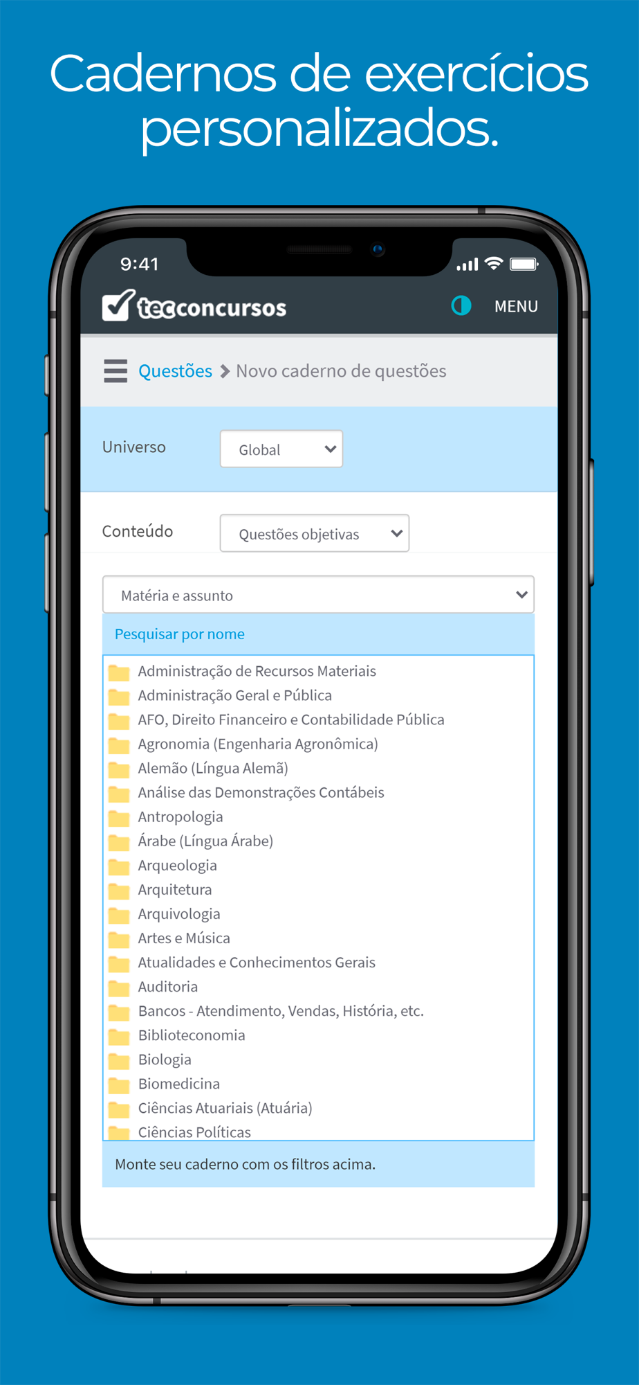 E não é só isso! Material teórico (texto, vídeo e mapas mentais) de qualidade e todos os recursos tecnológicos que o só o Tec Concursos oferece.