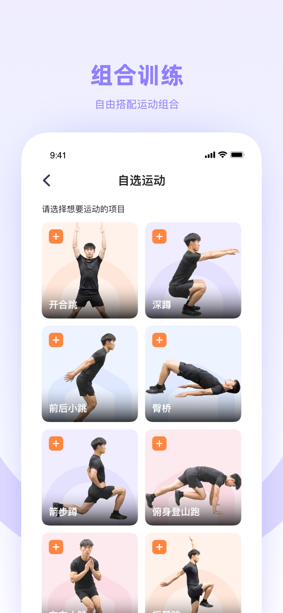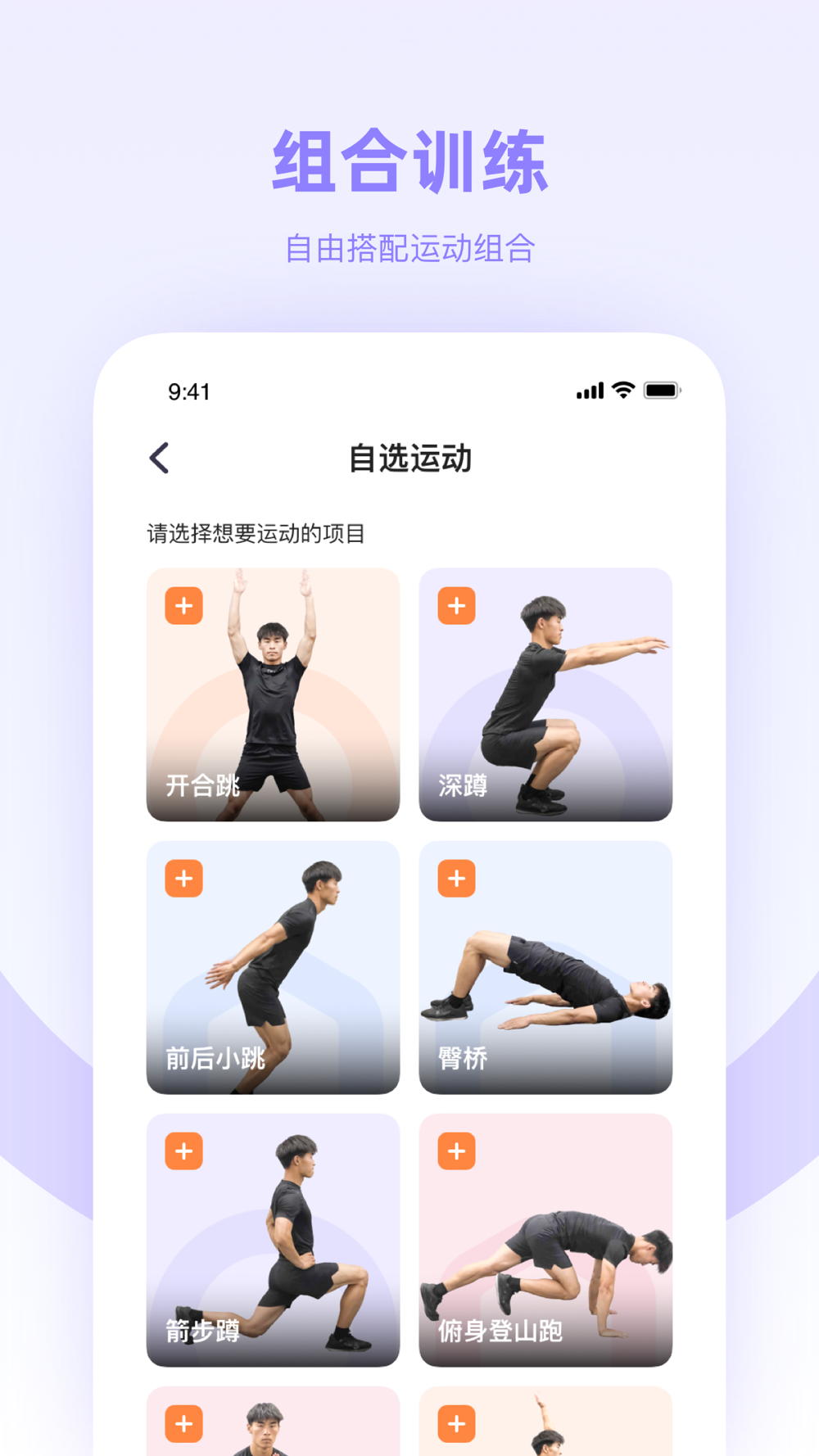 热门项目、组合训练、自选运动,快来挑选你喜爱的运动吧!