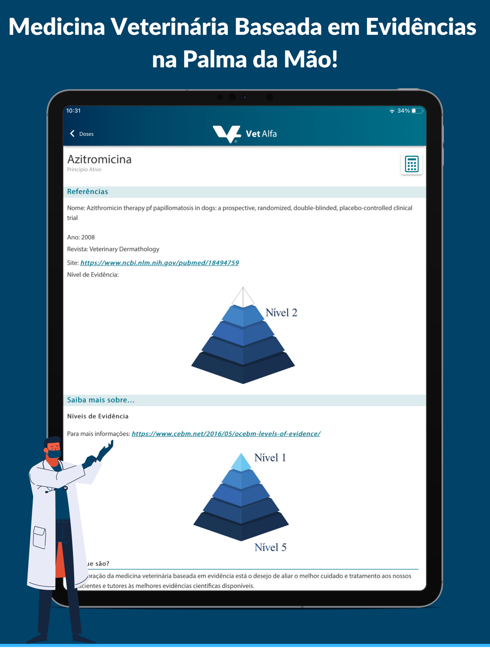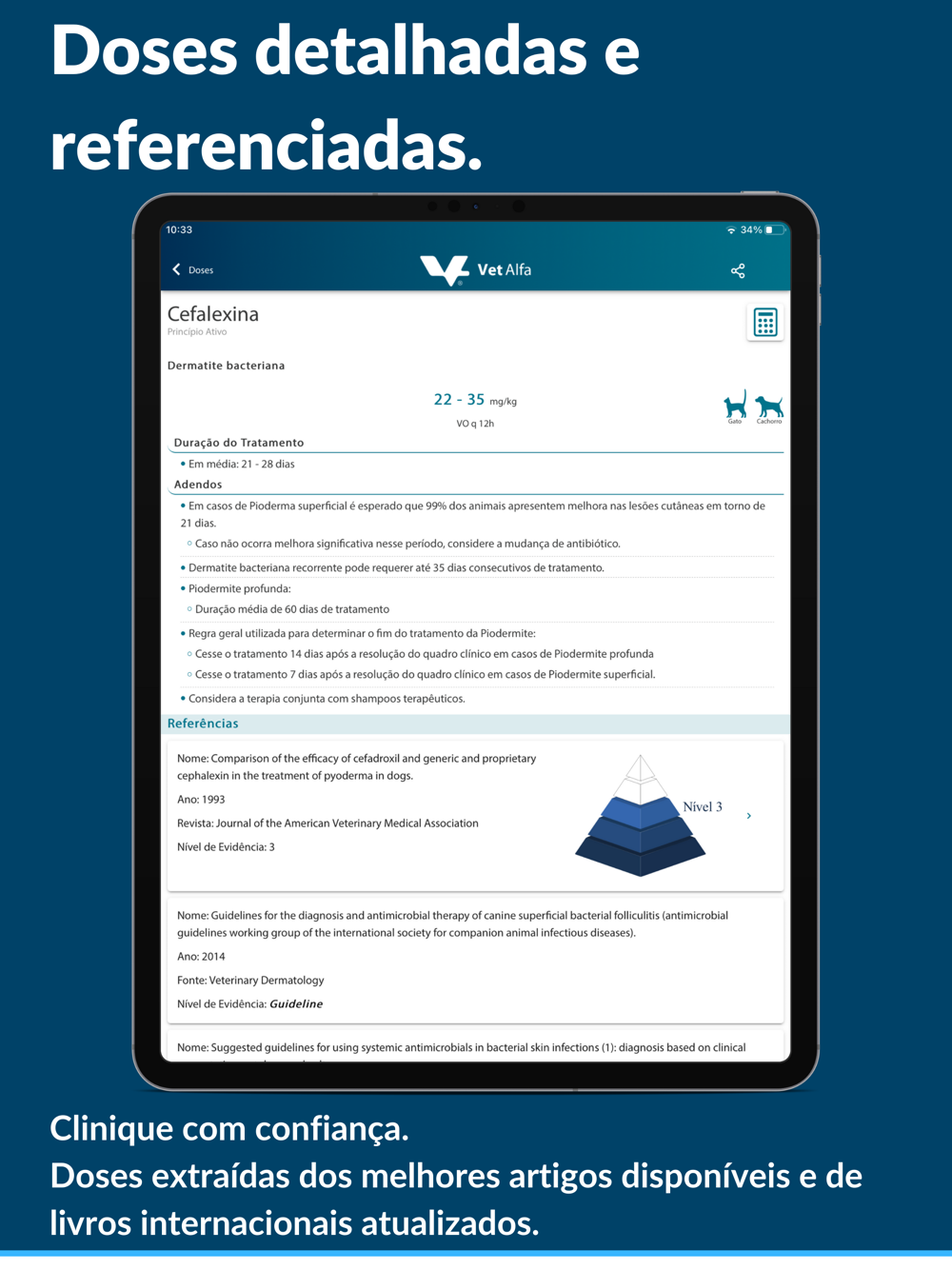 - Você e seu paciente merecem mais: A medicina veterinária baseada em evidência é reconhecidamente o padrão ouro a ser praticado, mas nossa rotina clínica corrida pode nos impedir de praticá-la em sua plenitude, o Vet Alfa torna a terapêutica baseada em evidências simples, intuitiva e a um toque de distância.