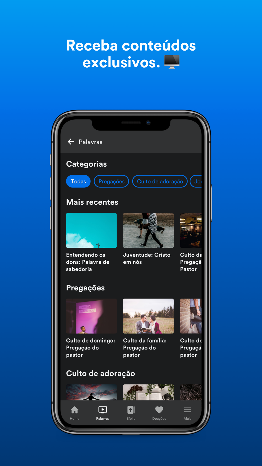 - Acompanhe a igreja de onde estiver através dos nossos vídeos, conteúdo em áudio e publicações. Baixe áudios e conteúdos exclusivos na sessão de downloads e tenha tudo offline.