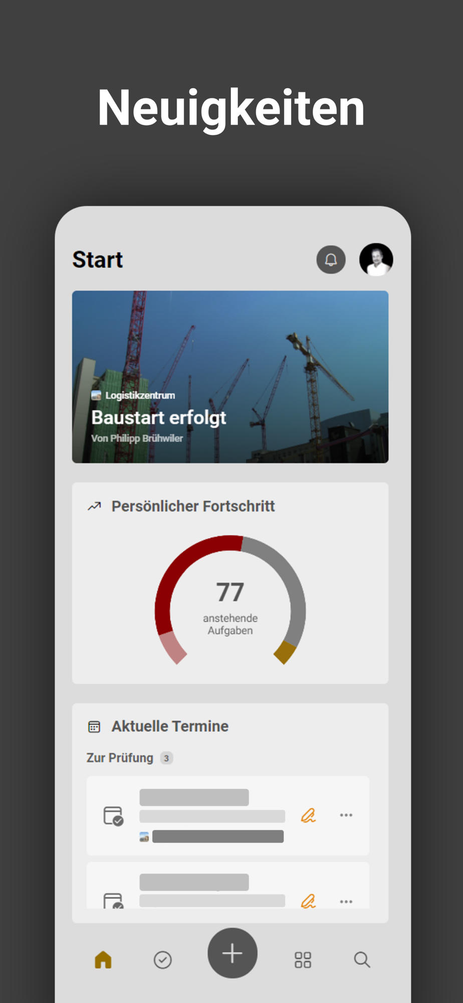 - Project Hub: All projects, tasks, appointments and more in a personal overview