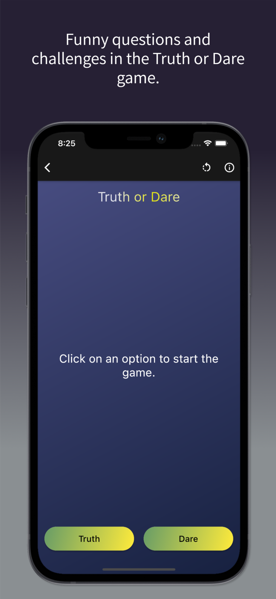 The Never Have I Ever (I've Never) and Truth or Dare games are present in the app, so that you and your friends can play and create a wonderful moment of entertainment and relaxation.