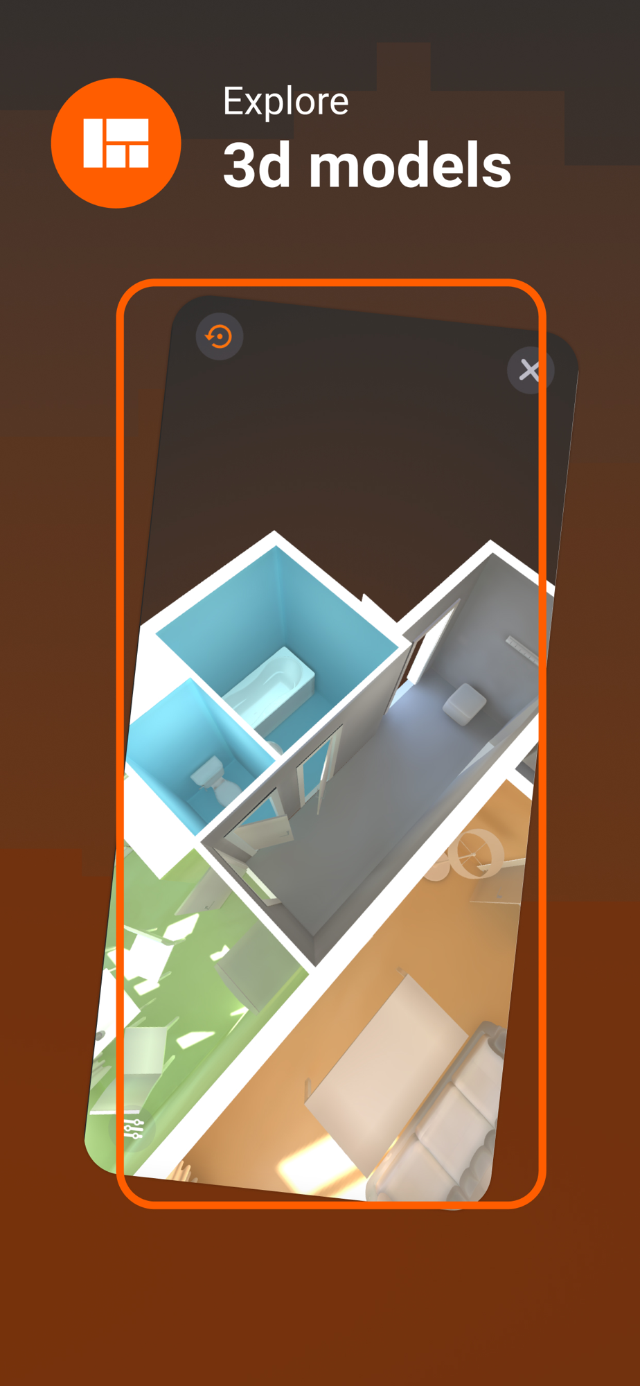 Take a tour using AR (augmented reality) - walk around the apartment and feel the size of the premises as realistically as possible (if your device is compatible with this technology) - or use on-screen joystick and gyroscopes