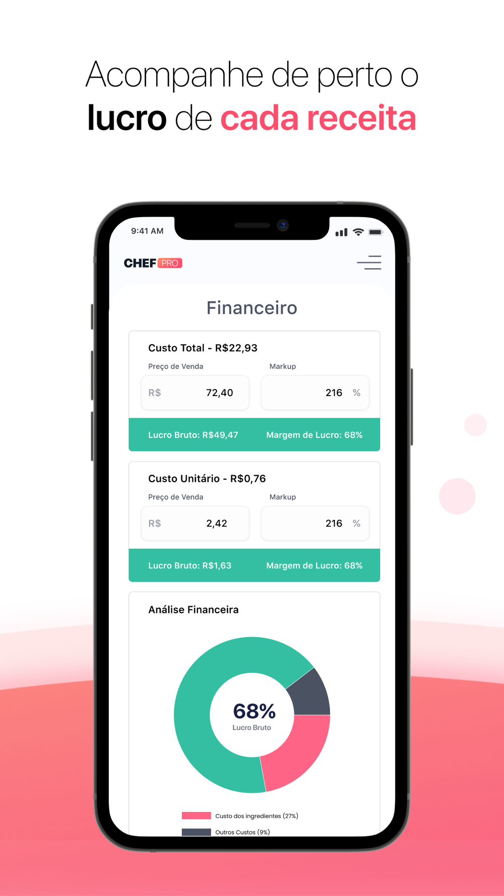 - Histórico de preços dos ingredientes: Tenha um gráfico mostrando a variação dos preços que você cadastrou nos seus ingredientes