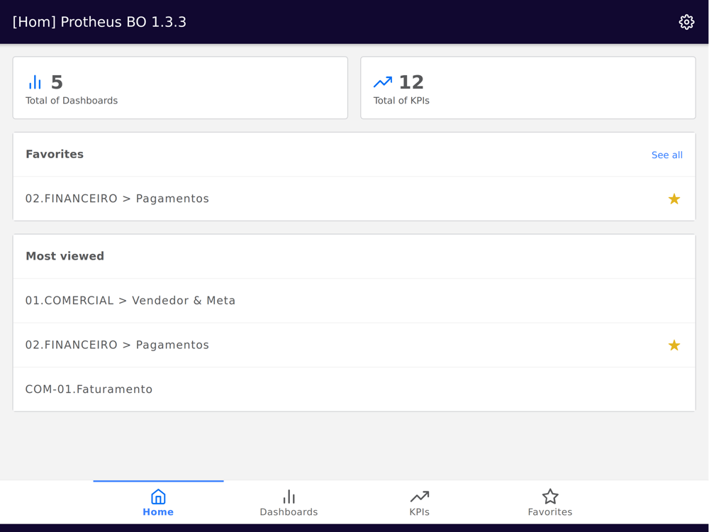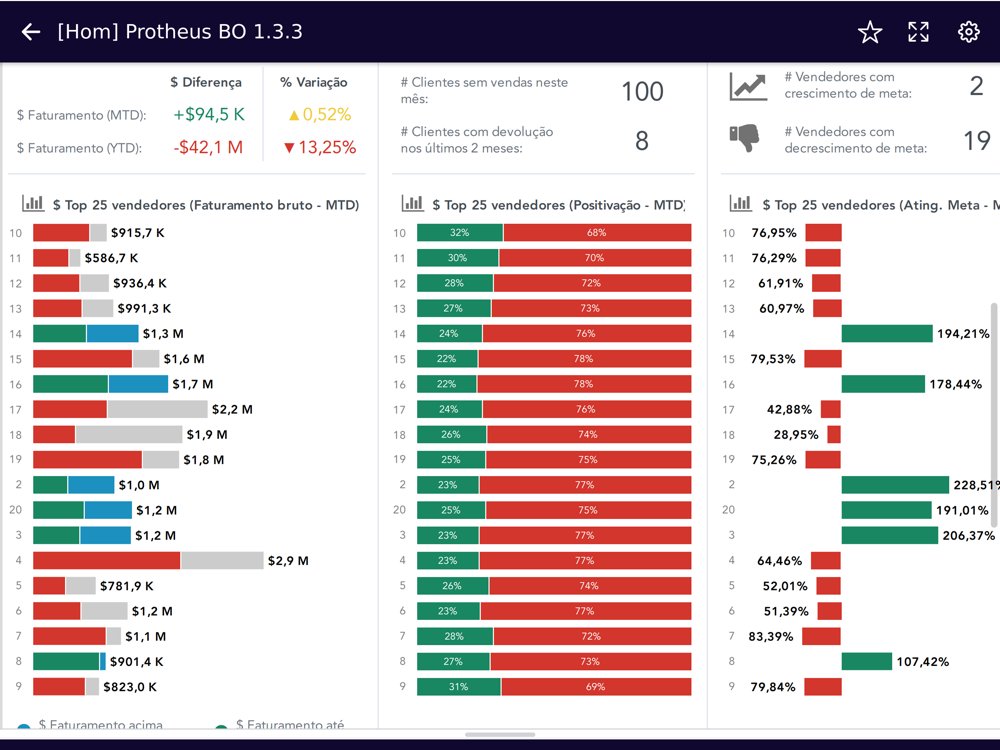 O aplicativo consolida as informações da sua empresa em dashboards dinâmicos e intuitivos, que permitem uma gestão de indicadores e resultados muito ágil, proporcionando uma tomada de decisão muito mais segura.