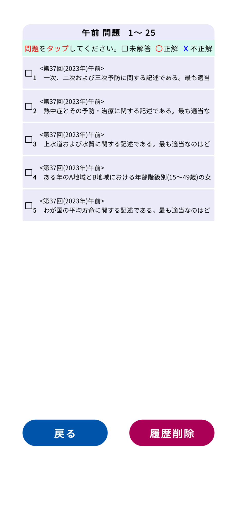 ②正解・不正解の履歴が残ります。