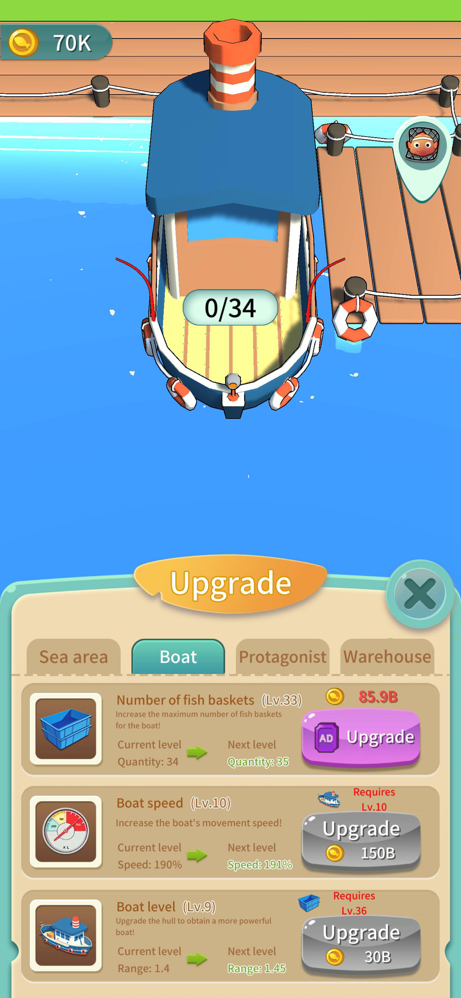 Your hard-working fishery has finally ushered in the harvest season, and quickly catch them all and ship them to the merchants who buy them. In addition to the casual gameplay of fishing and selling fish, you can also upgrade your fishing boat by consuming the gold coins you get to make it more beautiful and practical.