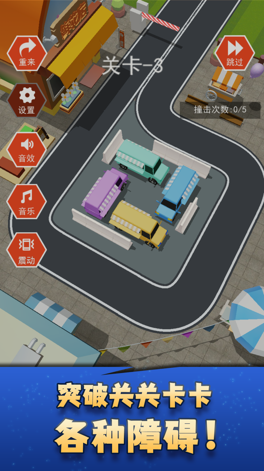 【操作简单】您可以通过垂直或水平移动车辆来把车子开出停车场。当所有的车都开出了停车场时,你就赢了。
