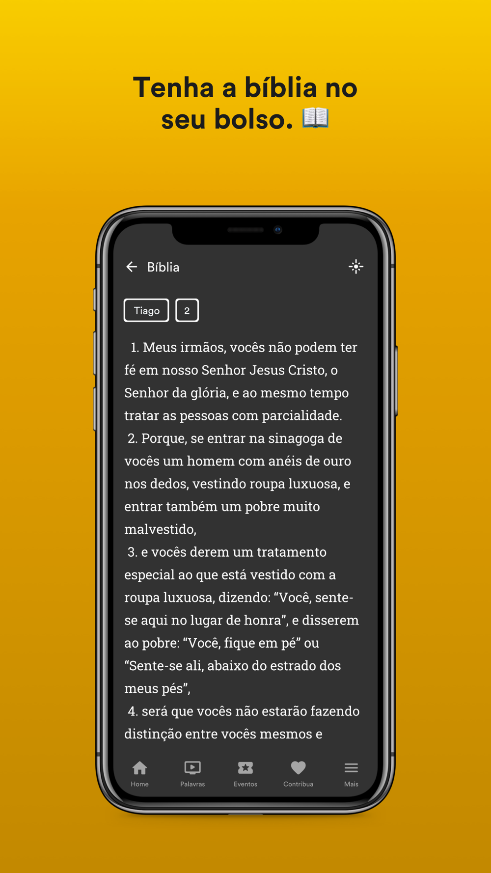- Siga a agenda e fique por dentro de tudo que acontece na igreja, inscreva-se em eventos e tenha seus ingressos sempre com você.