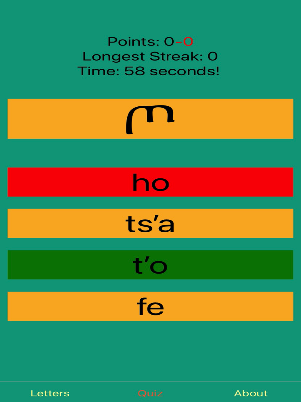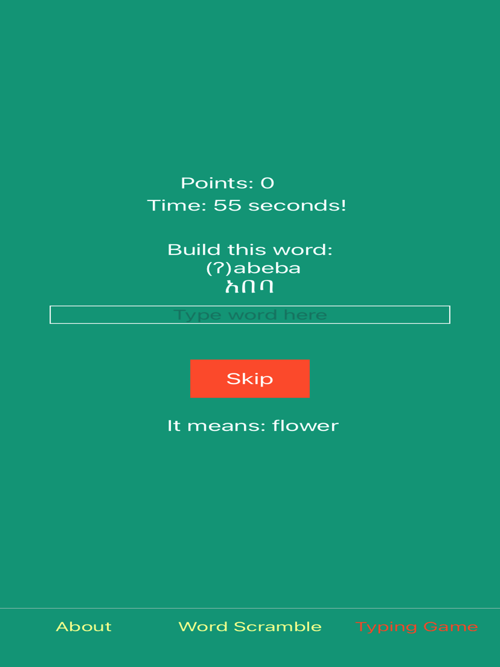 The syllable bases are split into two lists to make quizzing yourself on them a little more manageable. There is also a word scramble game and a typing game to help you learn to read common words and put them together.