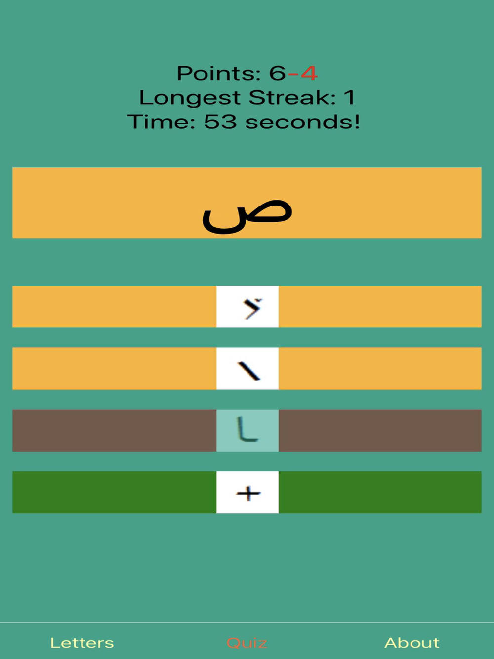 You can use the quiz section to test yourself after studying the letters. For ejective sounds that don't exist in English and Arabic, we transliterated by adding an apostrophe after the letter in Latin script or hamza after the letter in Arabic script.