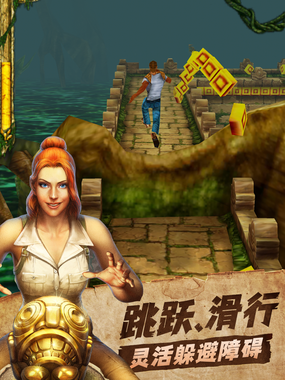《神庙逃亡》是一款竖版生存跑酷游戏,你将扮演一名冒险家来到古老的神庙中寻宝,却碰上怪兽的追赶。需要操作游戏人物不断向前飞奔,灵活且快速的做出转弯、跳跃和卧倒等操作,在过程中你需要避开坍塌路段,越过重重障碍,在逃亡时,你可以左右晃动设备收集金币。游戏操作简单易懂,只需要一只手就能玩,轻松即可上手,但是又如此困难,任何一个失误都能让你从头再来,而游戏过程却又如此刺激,让人欲罢不能,你只能不断的往前逃亡逃避抓捕,道路却仿佛没有尽头。