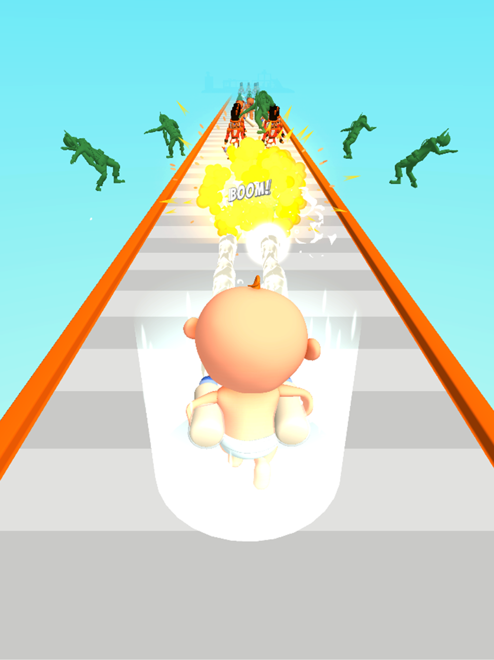 Defeat Toy Enemies with your milk bottles. Use you milk as your weapon and reach your play room!