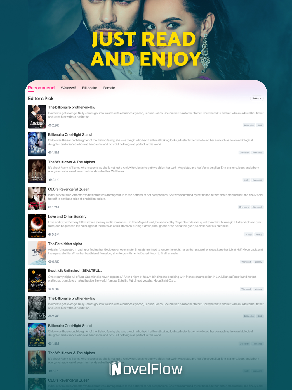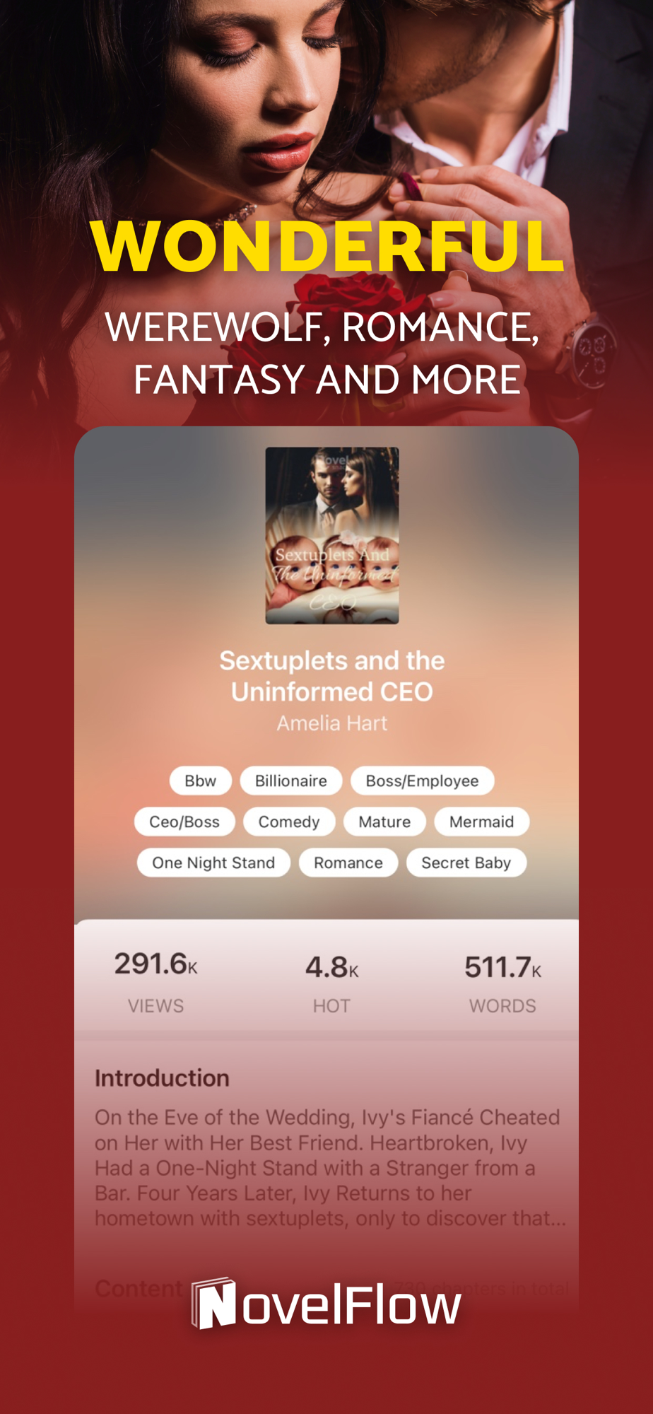 NovelFlow is a must-have app for any avid reader who loves werewolf romance stories and billionaire romance stories.