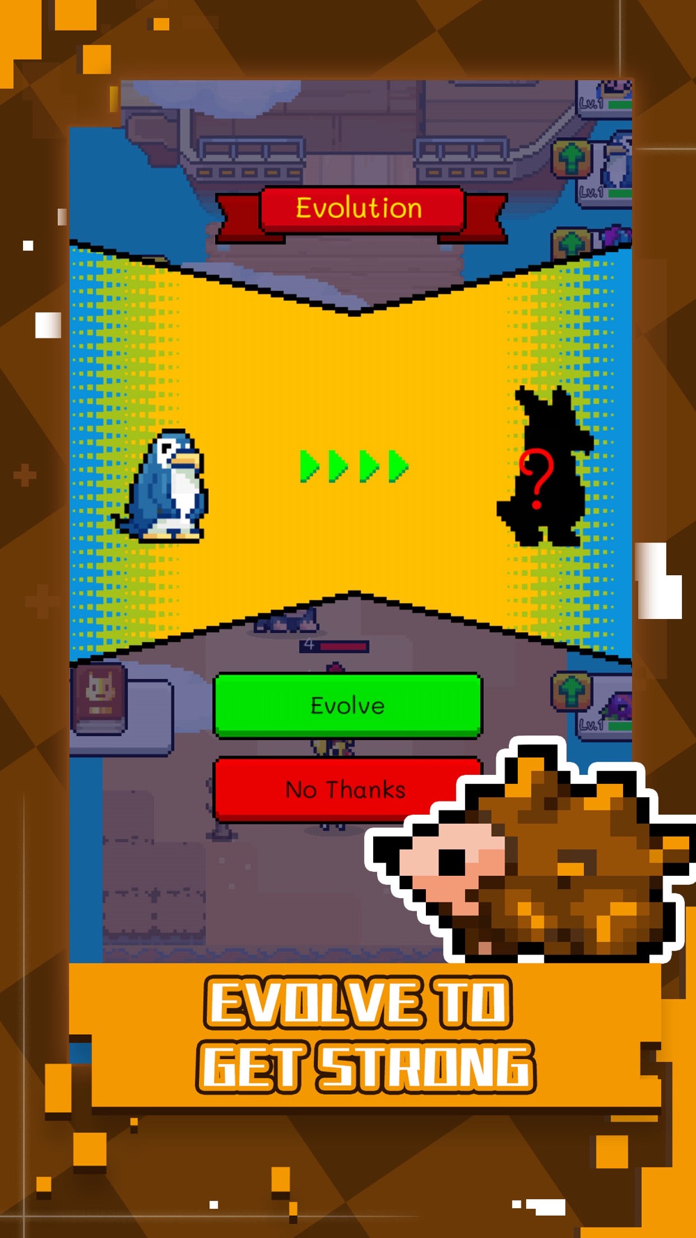 After your pets grow up to higher levels, you can evolve them to unlock their new styles and get stronger power!