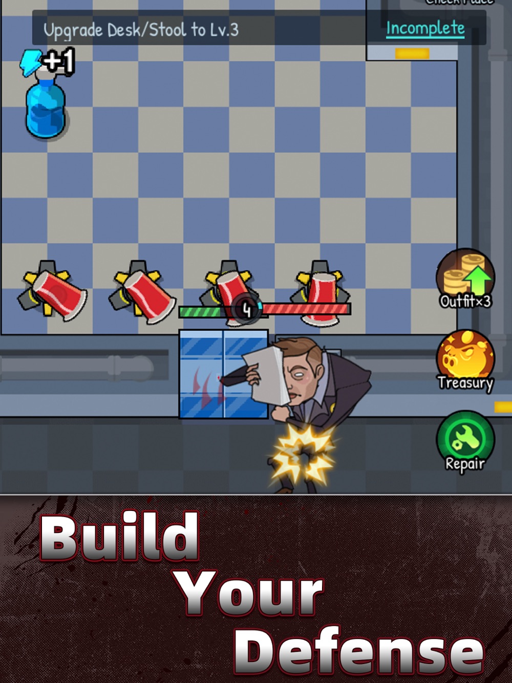 After you get in the room, the Boss will try to break in your office. Build your defense to fend off the attacks from the Boss.